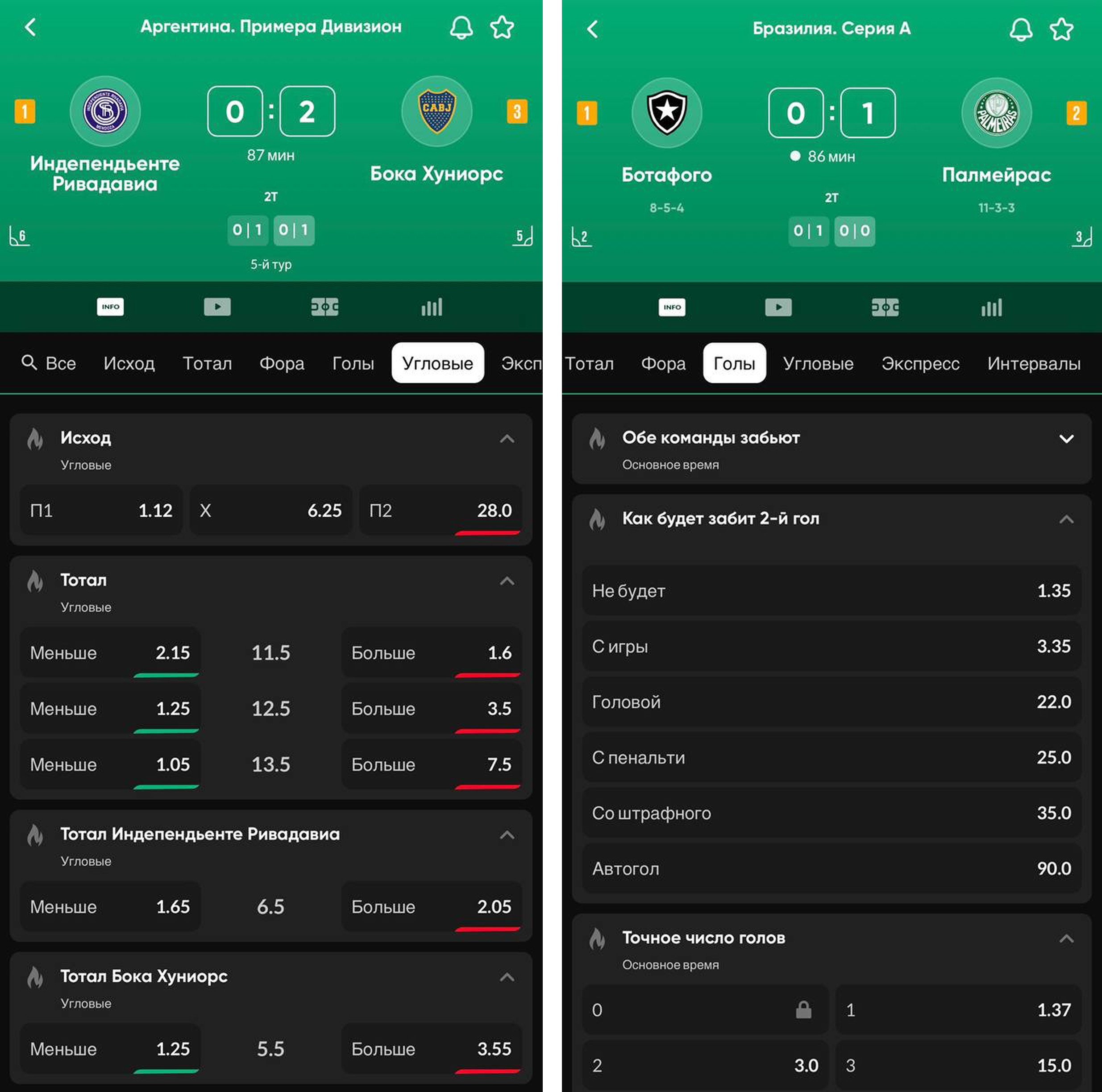 Ставки на угловые: игрок ставит на увеличение количества угловых после того, как увидел назначение углового удара.