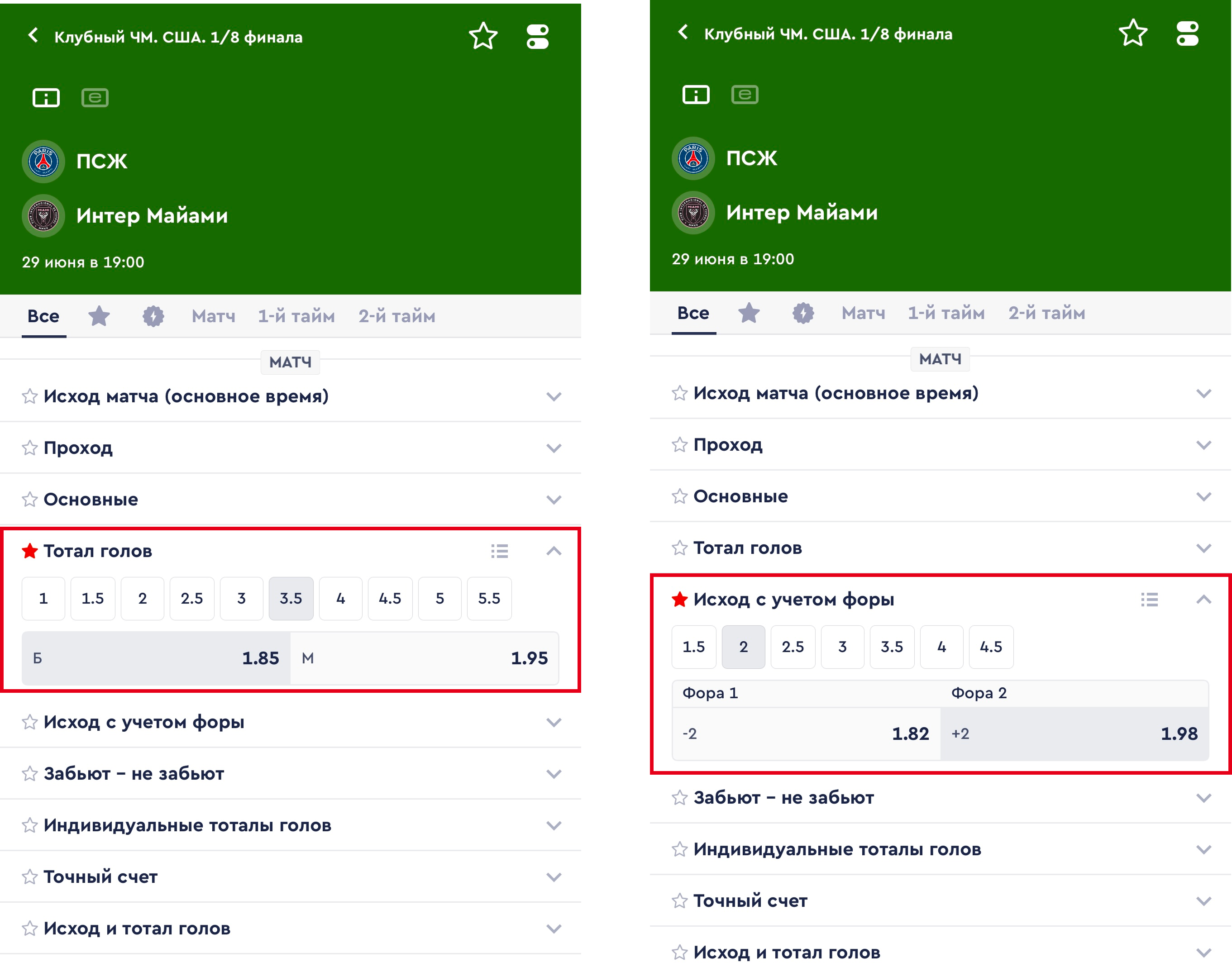 Фора (гандикап) – это ставка, учитывающая преимущество одной команды над другой. Фора может быть положительной, отрицательной или нулевой. Суть ставки заключается в том, что к результату одной из команд добавляется коэффициент форы, и затем этот итог сравнивается с реальным результатом матча.