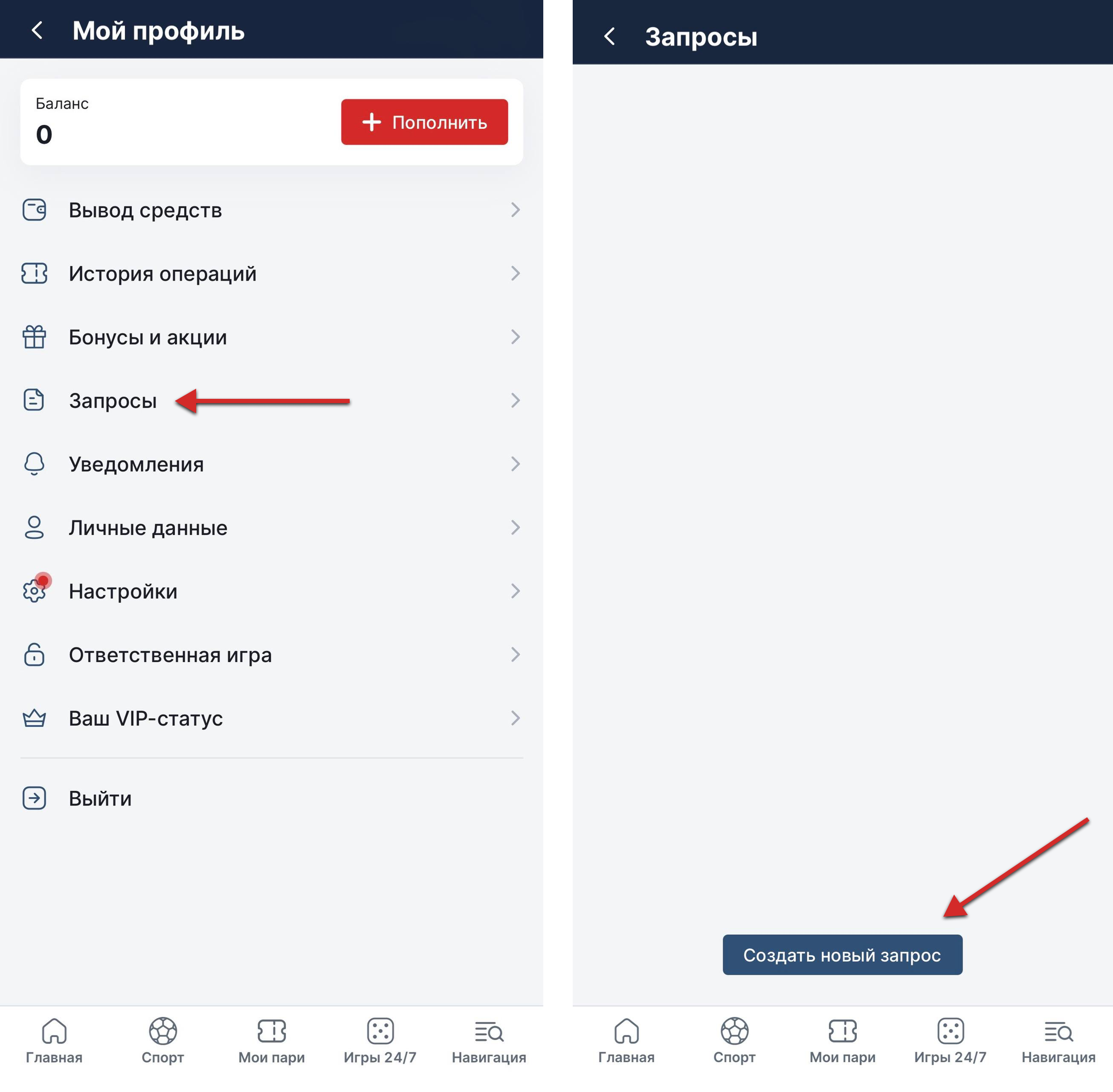 Зайдите на официальный сайт в мобильной версии, веб-версии или приложении. Далее перейдите в раздел с вашим профилем и после на страницу «Запросы».
