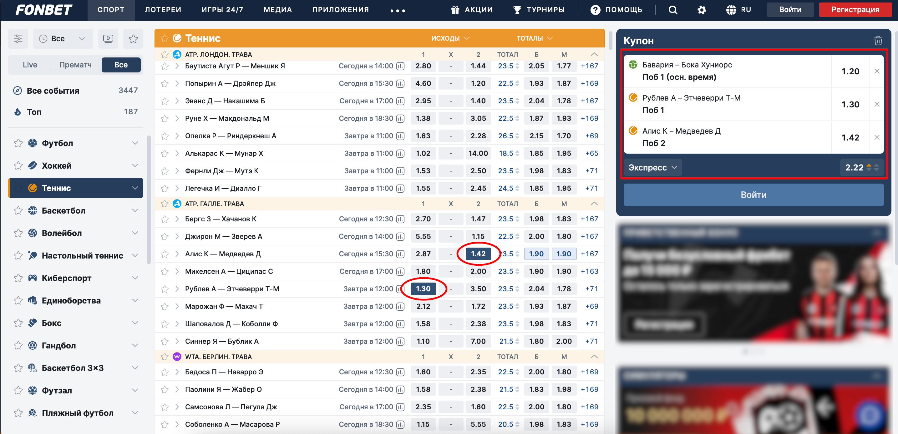 Чтобы создать экспресс-ставку на десктоп-версии сайта БК «Фонбет», потребуется всего несколько простых шагов: