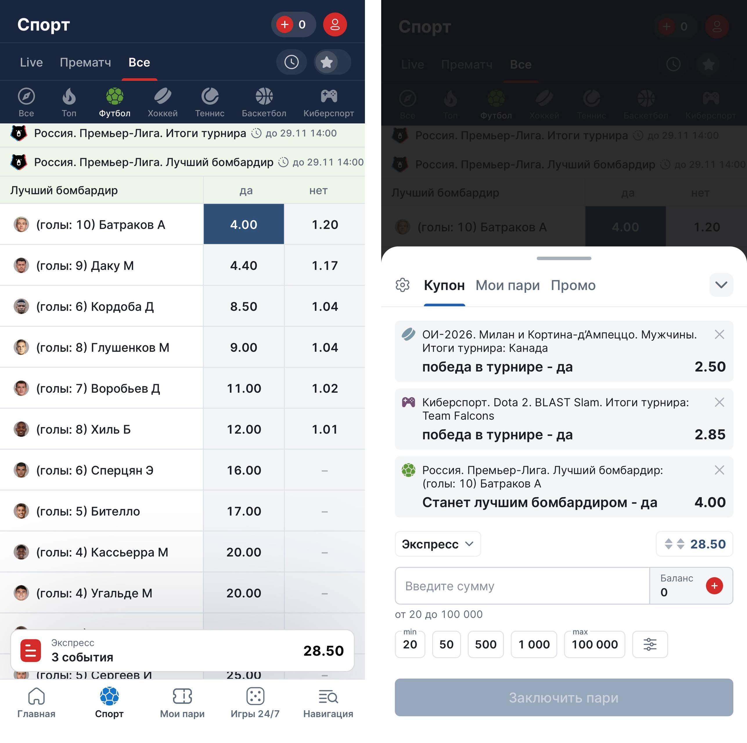 Как сделать экспресс-ставку в мобильной версии сайта или приложении «Фонбет»