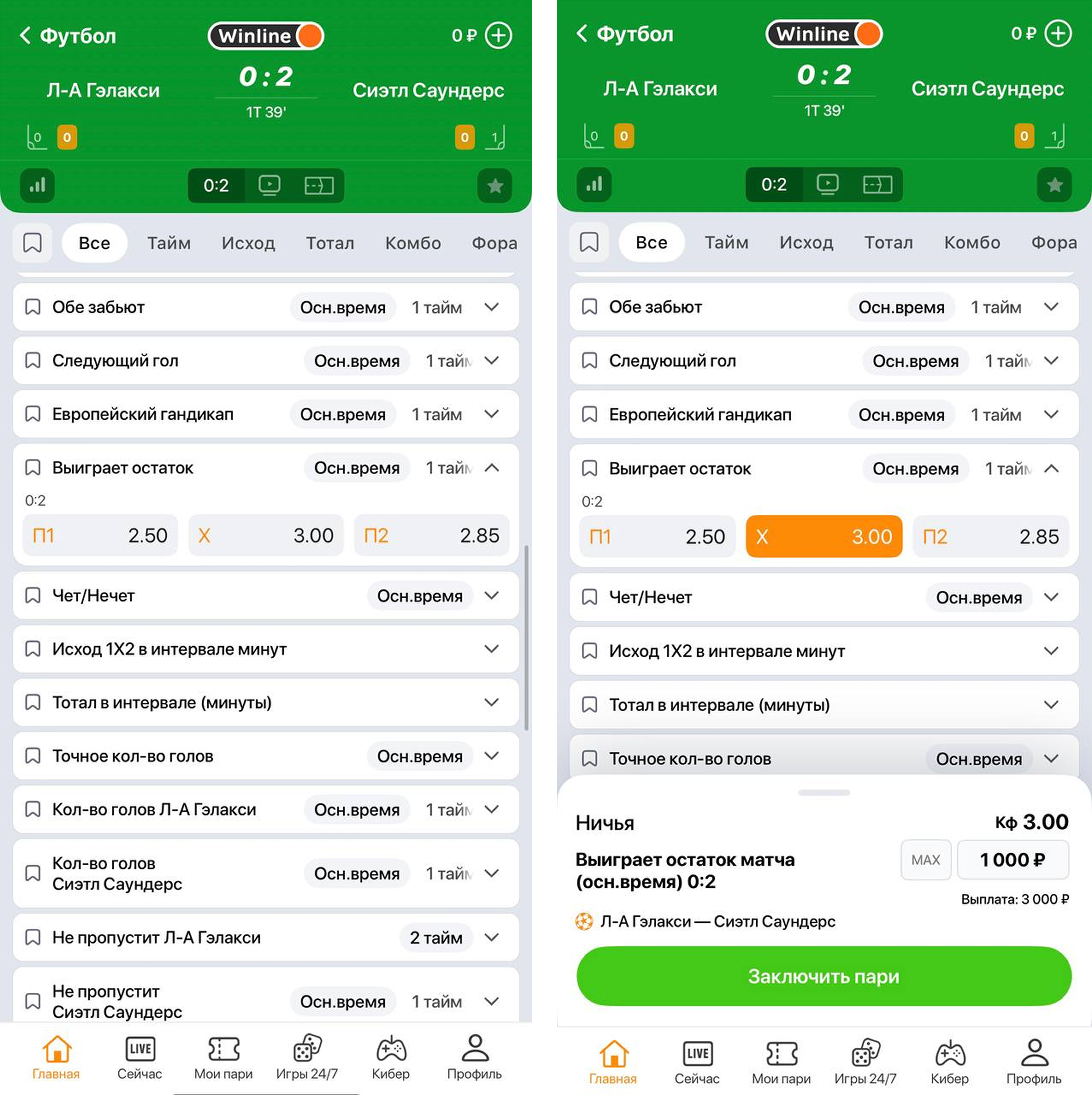 В ставке, кто выиграет остаток встречи, доступны два варианта исхода: выигрыш и проигрыш. Рассмотрим пример выигрышной и проигрышной ставки.
