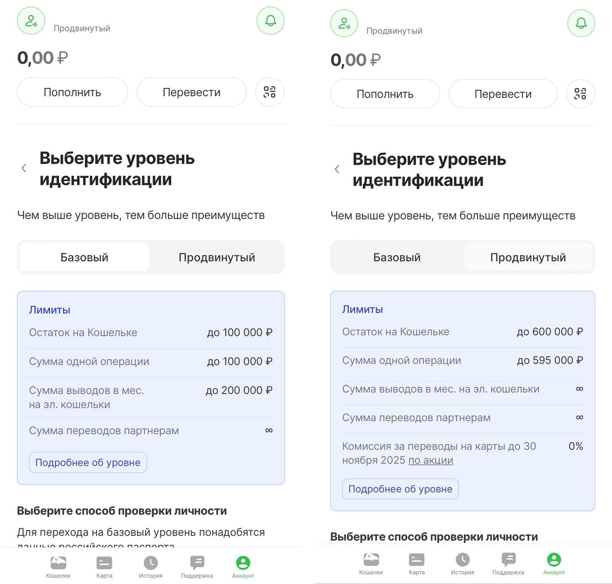Верификация бывает упрощенной и полной, разница заключается в лимитах, которые будут установлены на аккаунте клиента в ЕЦУПИС и БК. В зависимости от способа прохождения онлайн-идентификации игрок должен выполнить или соответствовать определенным требованиям.