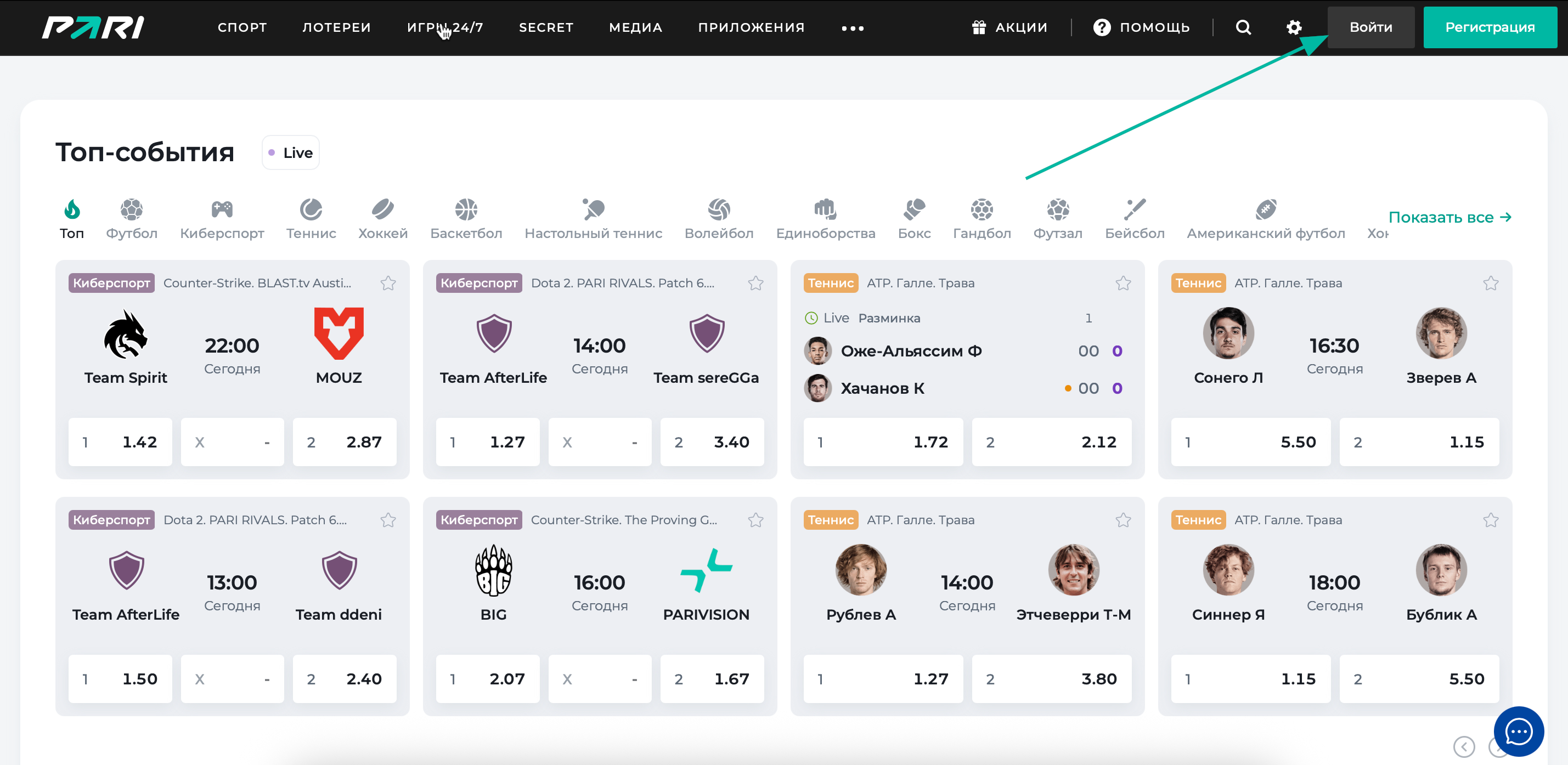 Полная версия сайта PARI предоставляет максимальное удобство при использовании ПК и других устройств с большими экранами. Для перехода в личный кабинет необходимо: