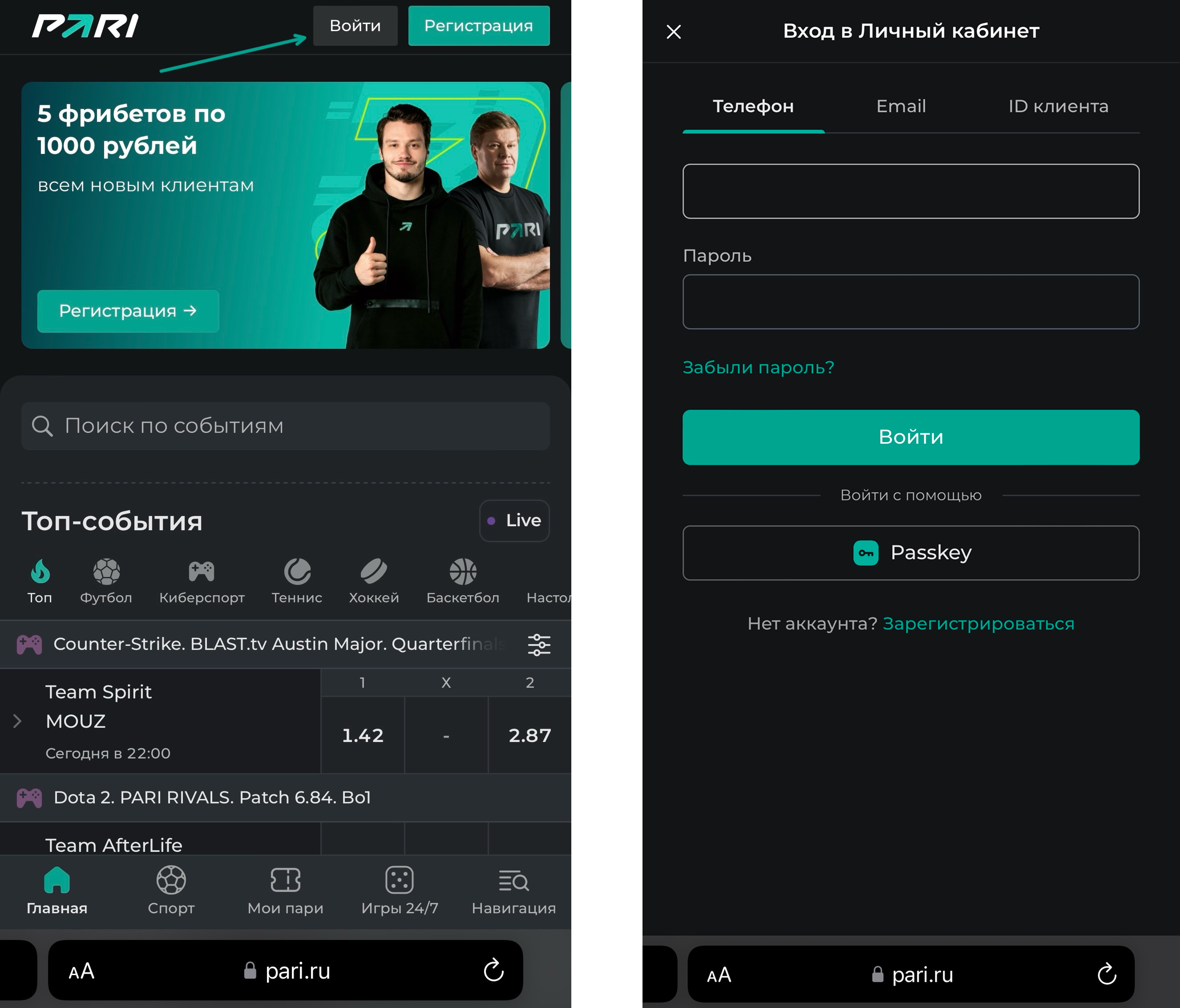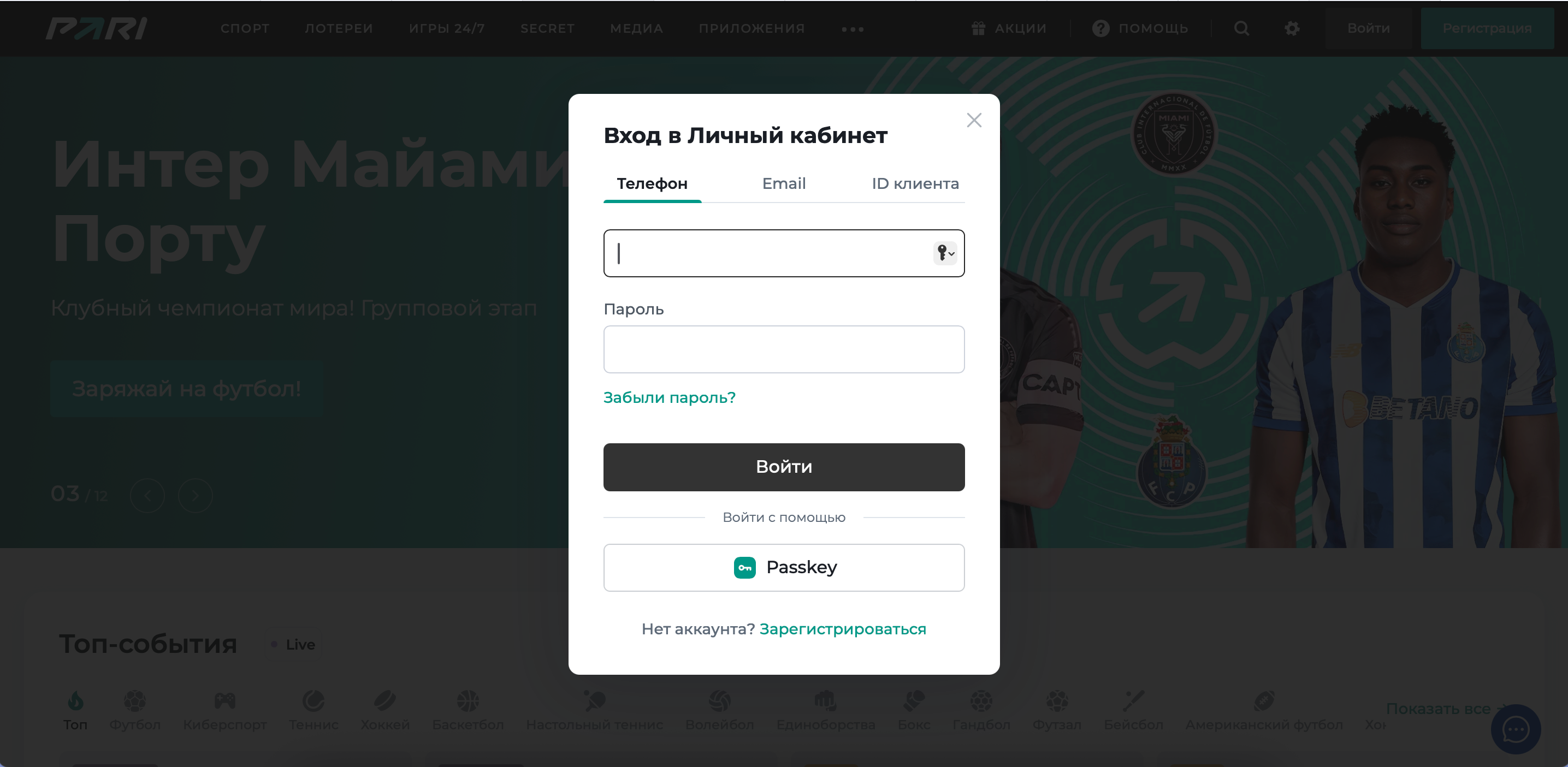 Вход в личный кабинет букмекерской компании PARI является стартовым шагом к возможности совершать ставки на спортивные события, следить за прямыми трансляциями, пополнять баланс и выводить выигрыш. Пройти авторизацию в БК можно с десктопа (ПК или ноутбука), мобильной версии сайта или приложения для устройств iOS и Android. Здесь мы разберем каждый из этих методов, а также рассмотрим способы авторизации, восстановления доступа и функционал, доступный в вашем личном кабинете PARI.