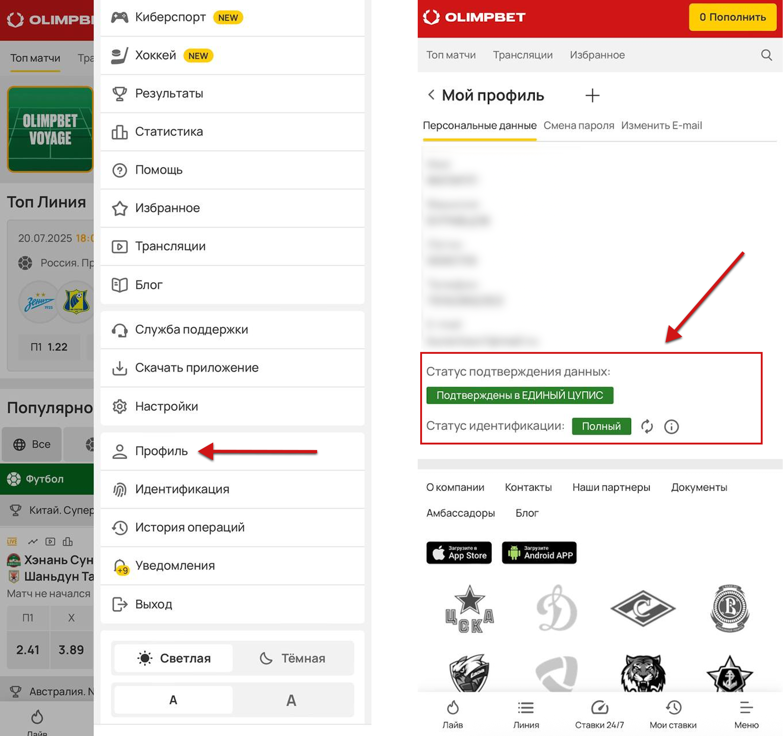 В «Олимп» есть несколько способов идентификации, выберите наиболее удобный для вас: