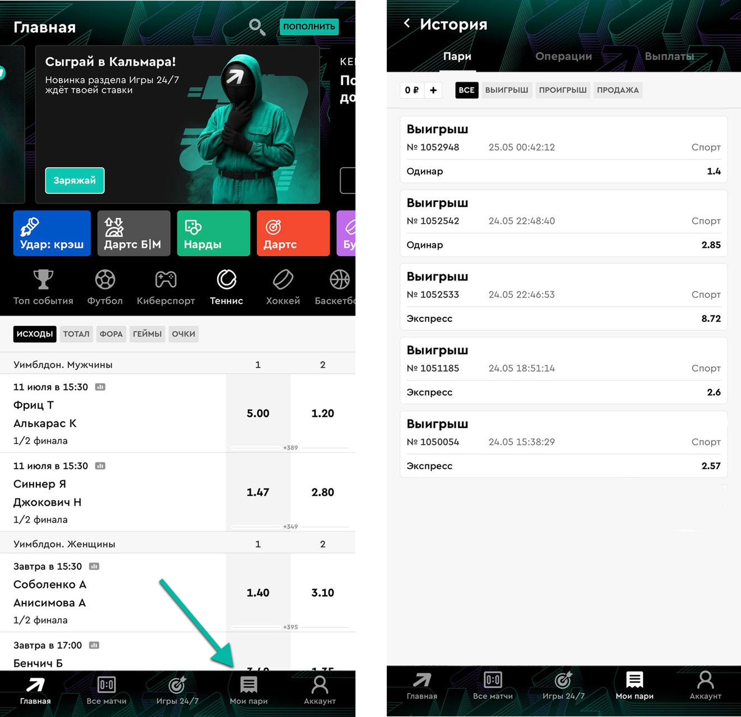 Либо просто нажмите на соответствующий раздел в меню с названием «Мои пари».