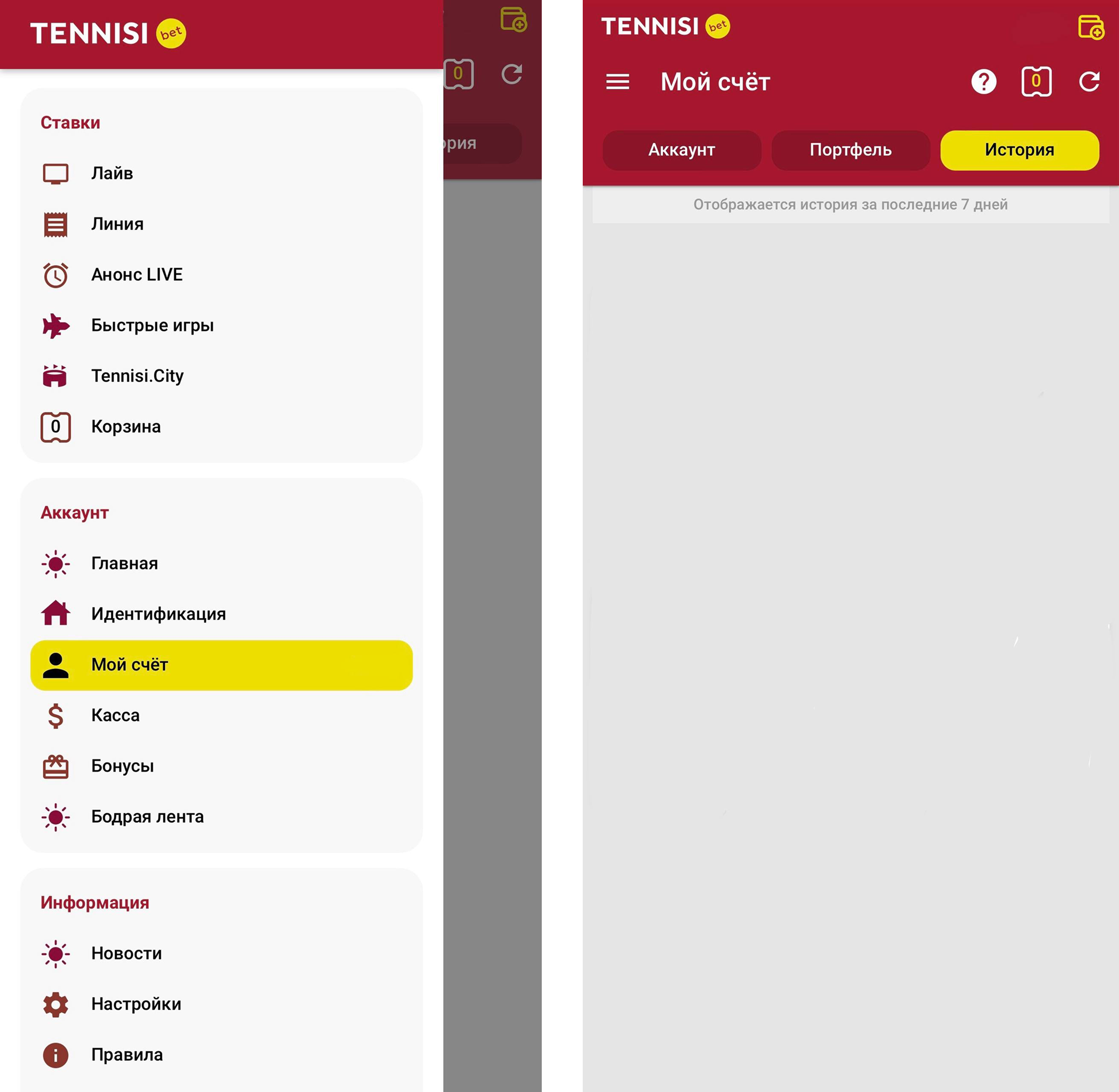 Чтобы просмотреть историю ставок на сайте Tennisi, выполните следующие действия: