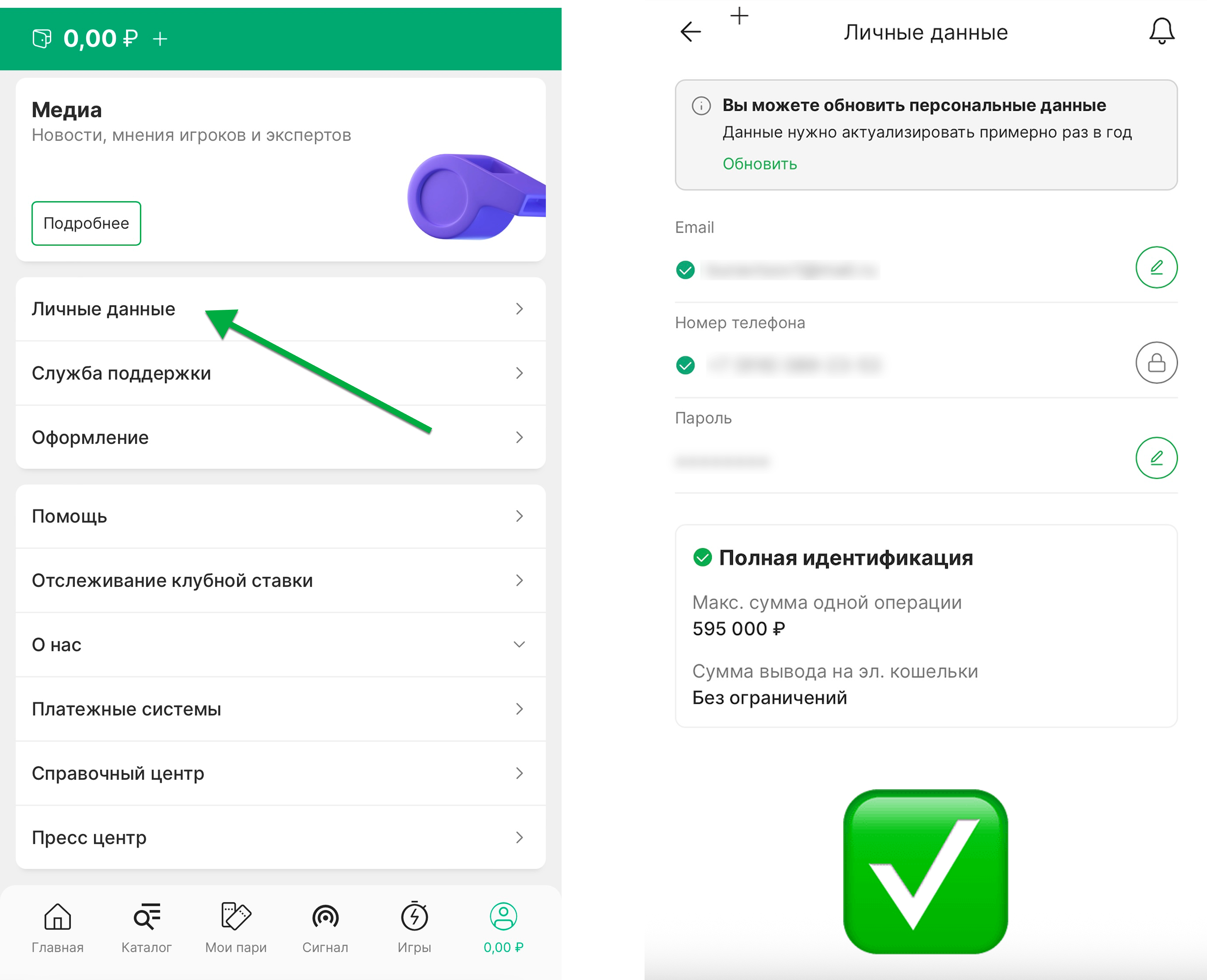 Следующее обязательное условие – идентификация в самой БК. Без подтверждения личности вы не сможете даже пополнить счет и сделать ставку, так что о выводе денег речи идти не будет. Идентификация бывает упрощенная и полная.