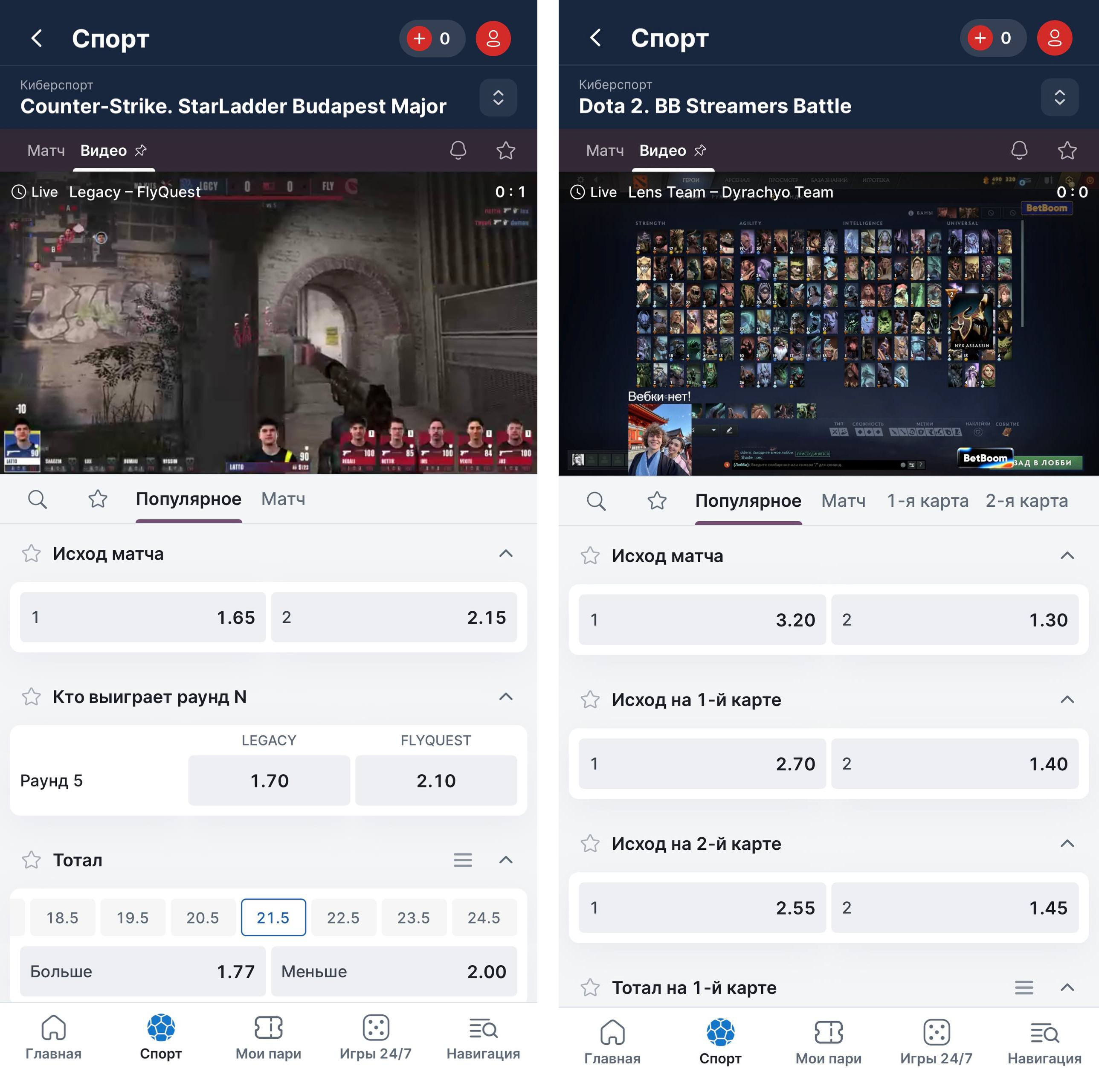 В разделе «Live» букмекерская компания «Фонбет» предлагает широкий выбор событий. Здесь можно делать ставки на матчи по футболу, баскетболу, хоккею и другим популярным видам спорта. Особое внимание уделяется престижным чемпионатам и важным турнирам. Также букмекер предлагает ставки на киберспортивные дисциплины, включая киберсимуляции футбола и баскетбола, где участвуют реальные игроки. Видеотрансляции этих событий можно смотреть прямо на сайте или в мобильном приложении.