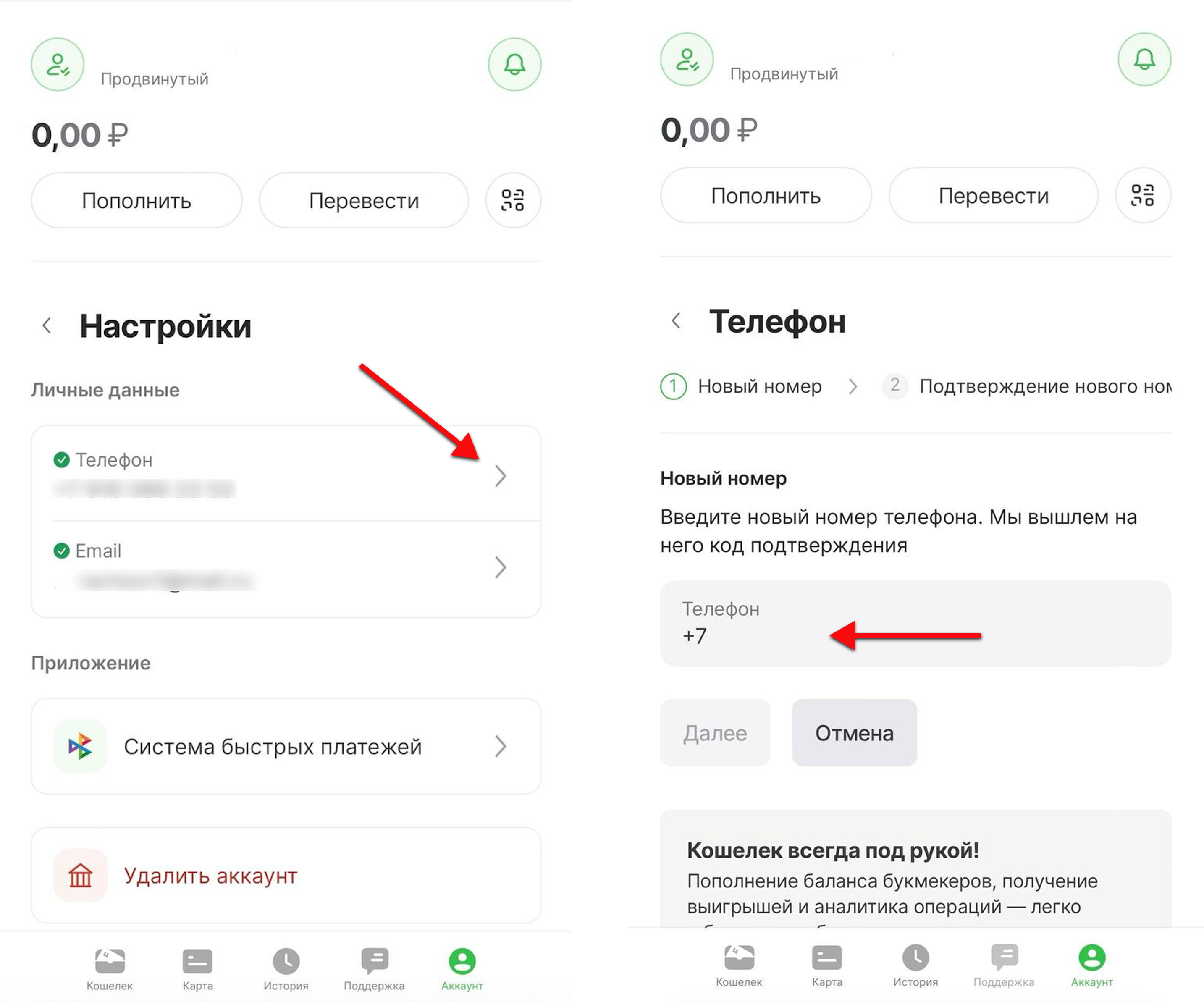 Смена мобильного номера, привязанного к профилю, доступна только на портале ЦУПИС.