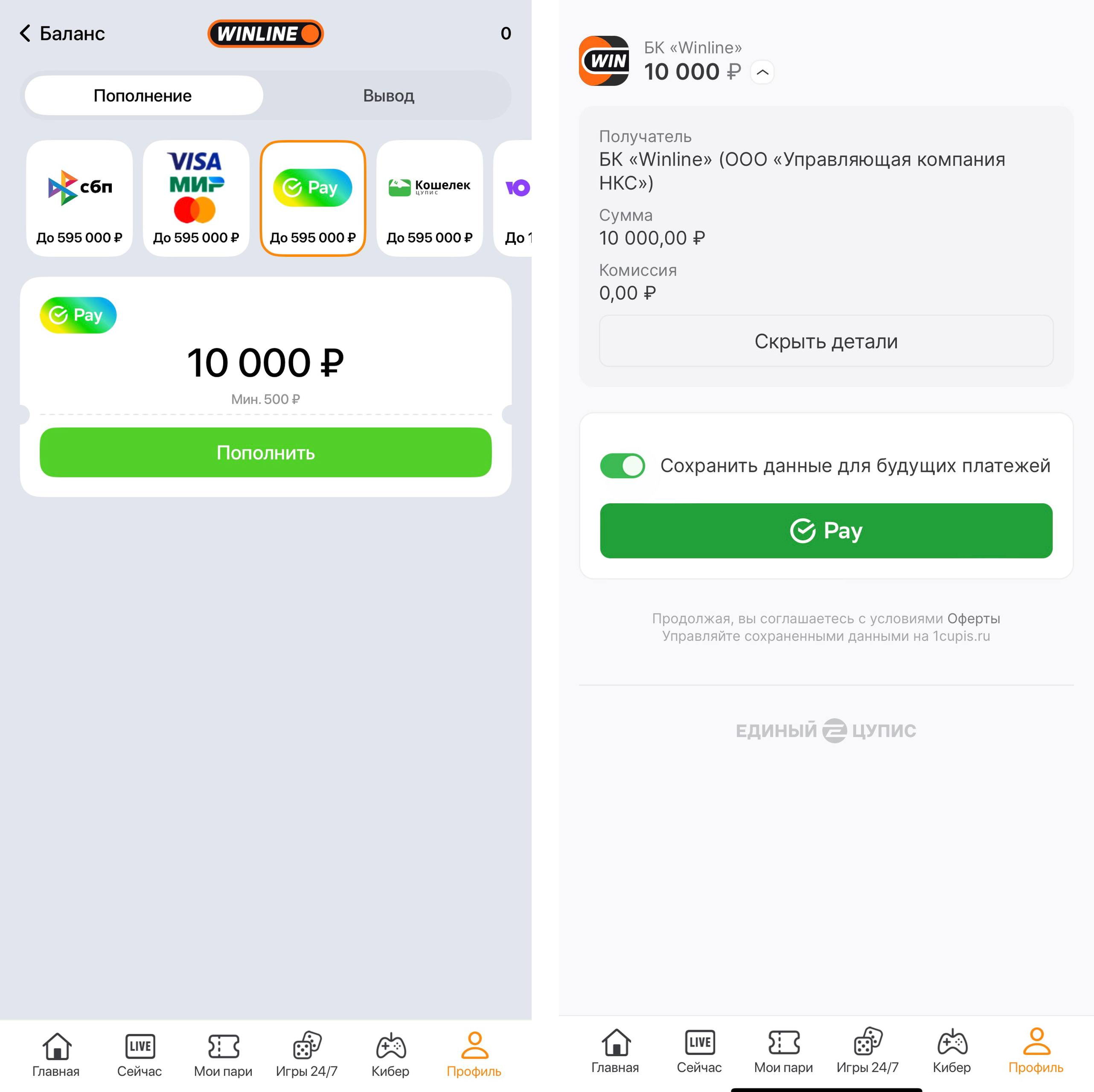 Для пополнения счета в WINLINE вы можете использовать банковские карты Visa, MasterCard и «Мир». Процесс пополнения следующий: