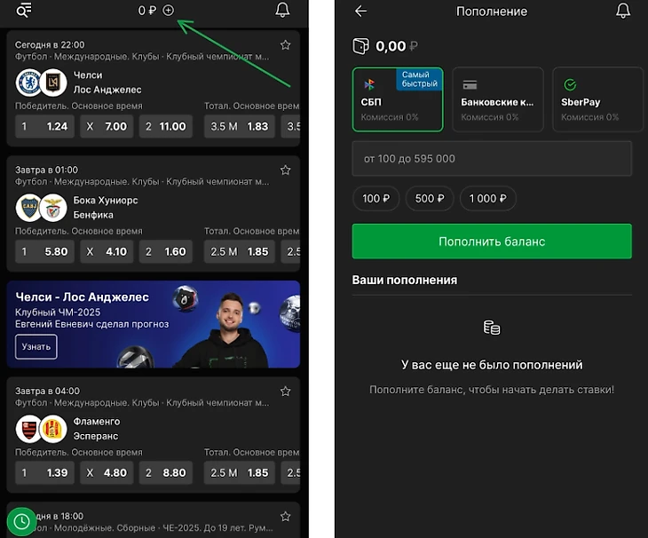 Система быстрых платежей SberPay: Эта опция доступна через мобильное приложение «Лига Ставок». Осуществите пополнение без лишних хлопот. Максимальная сумма пополнения: до 595 000 рублей.