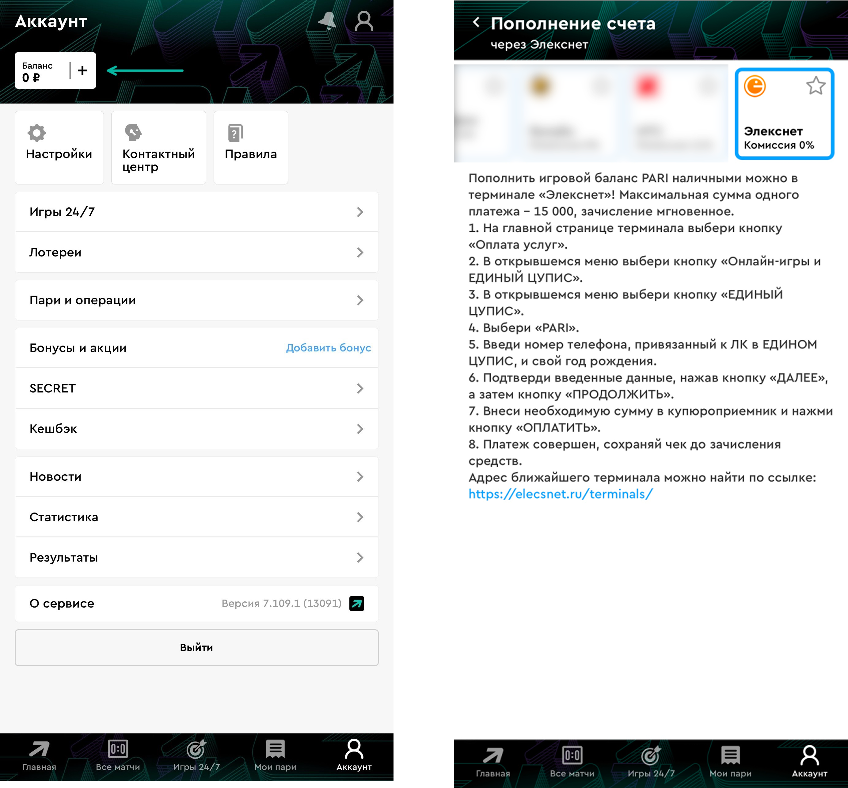 При пополнении счета в БК «Пари» вы можете использовать следующие методы: