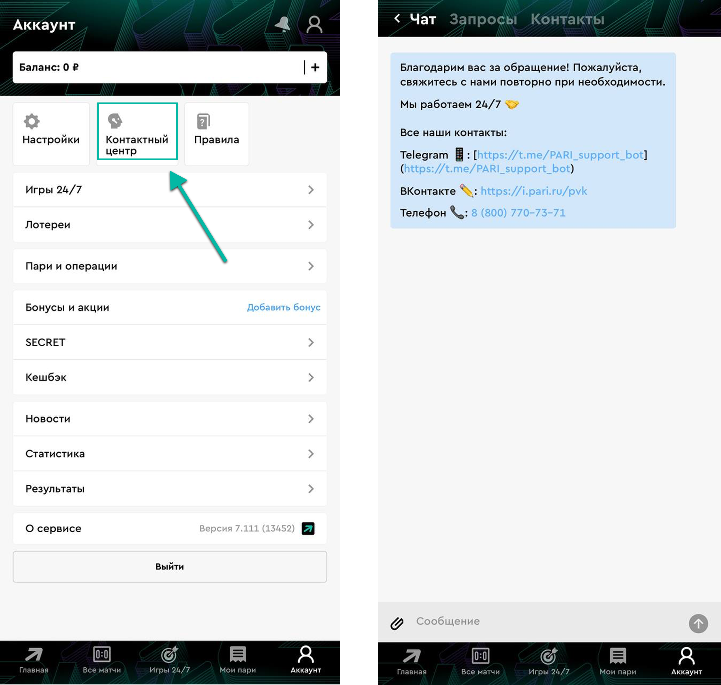 Свяжитесь с поддержкой. Первым шагом будет обращение в службу поддержки. Вы можете отправить письмо на электронный адрес support@pari.ru или воспользоваться онлайн-чатом на сайте.