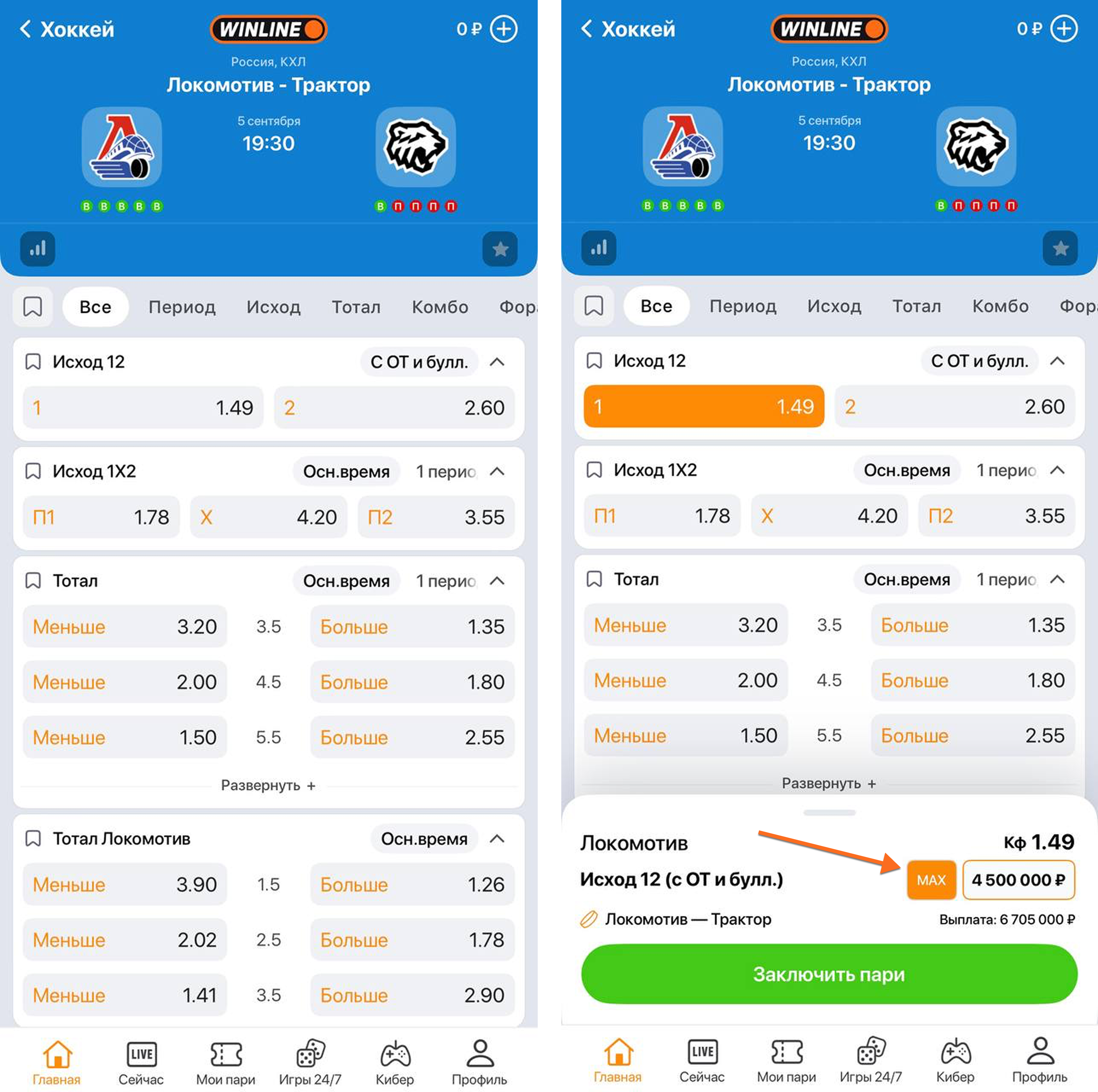 Winline принимает ставки от клиентов старше 18 лет. Чтобы сделать максимальную ставку, выполните следующие действия: