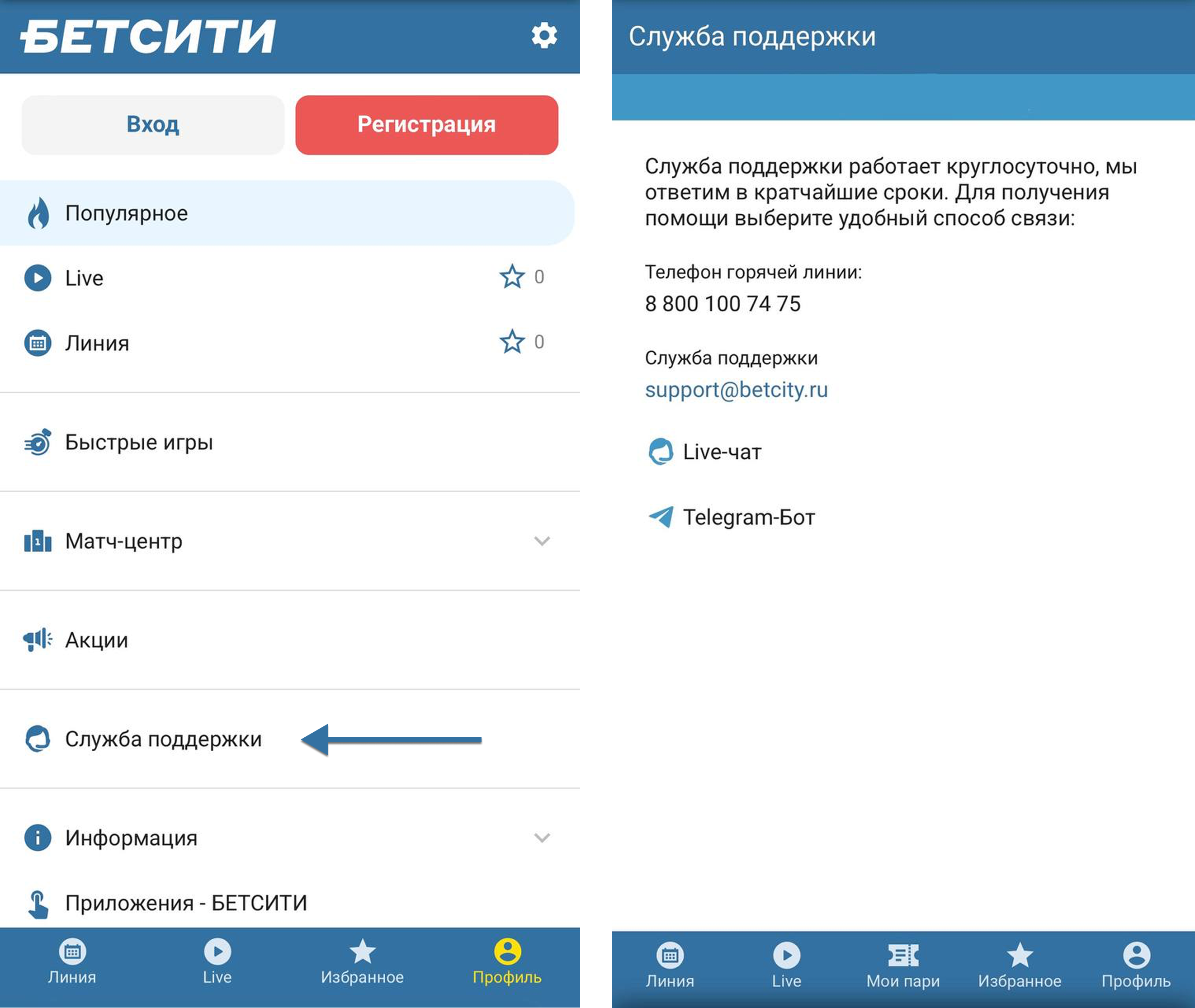 Также вы всегда можете обратиться с интересующими вопросами в поддержку БК. Для этого достаточно перейти в раздел «Служба поддержки» и выбрать удобный вид связи с оператором.