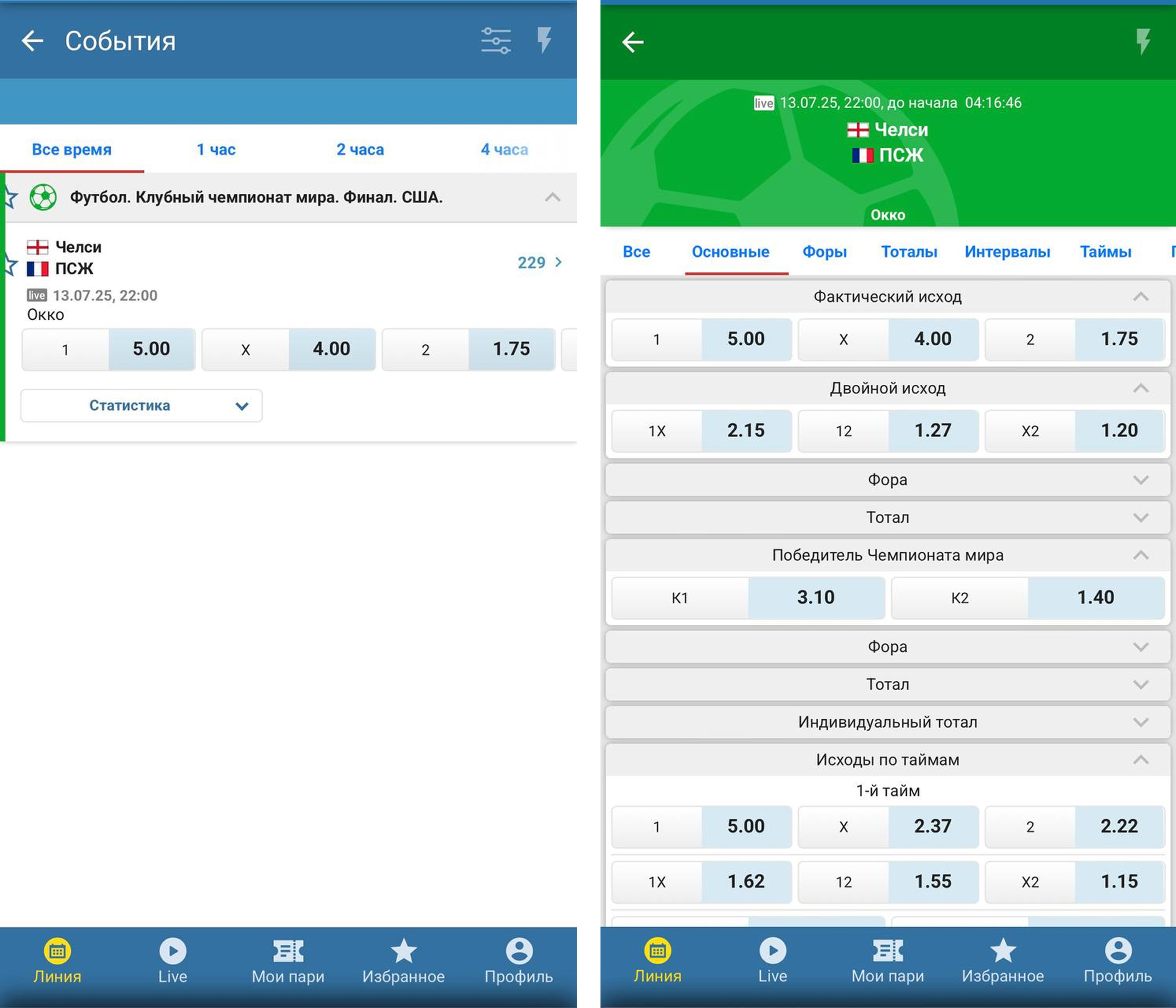 Основной рынок представляет собой список событий, доступных в разделах «Линия» и «Лайв». Это основные спортивные мероприятия, на которые можно заключать пари. Роспись включает дополнительные варианты ставок на матч, также известные как смолмаркеты. Эти ставки предоставляют более подробные и специфические варианты пари. Чтобы увидеть все доступные ставки в росписи, необходимо нажать на название события.