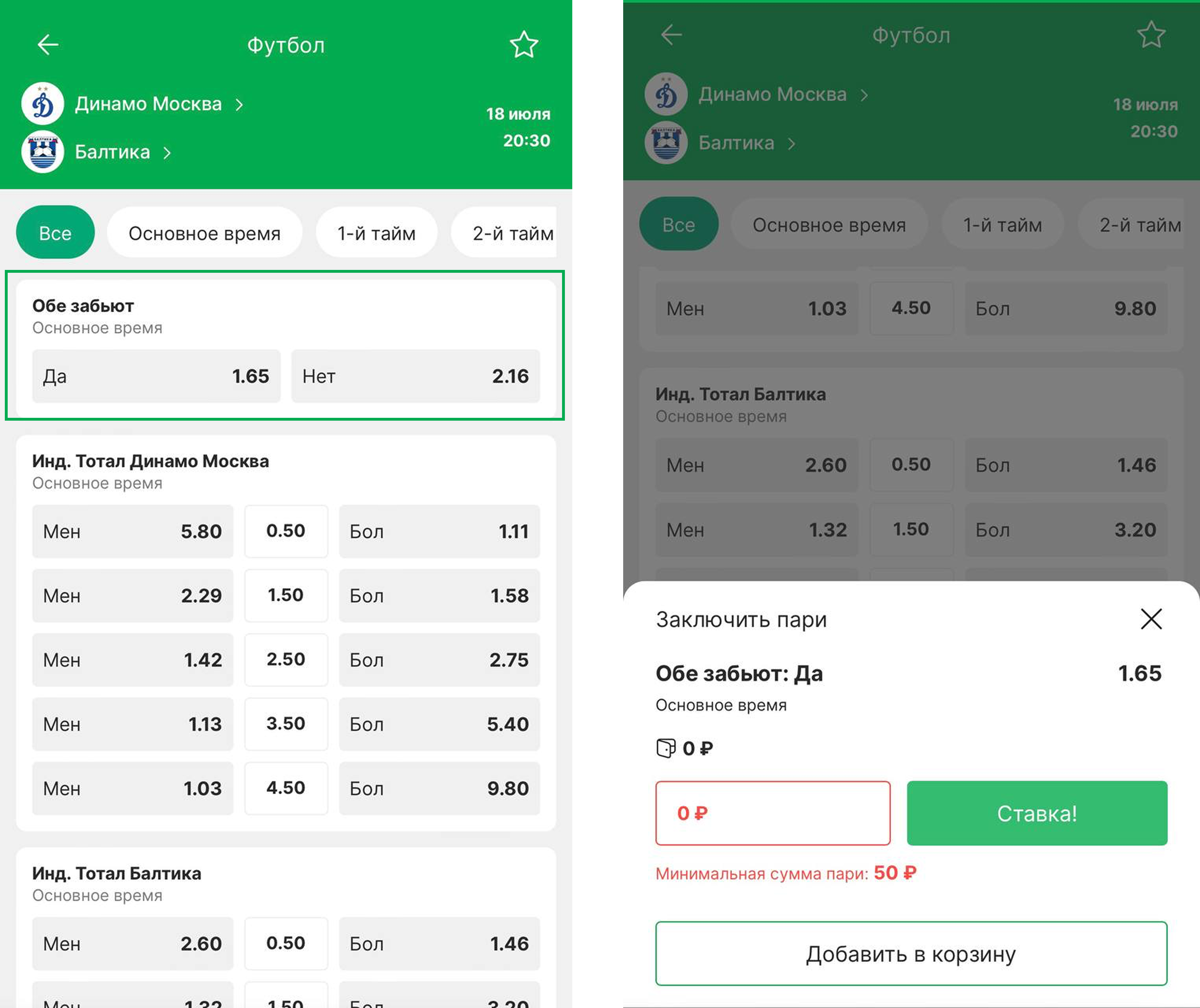 БК «Лига ставок» предлагает ставки на то, забьет ли гол одна или обе команды, в расширенной росписи на некоторые матчи. Коэффициенты на такие ставки обычно начинаются от 1,35 и могут достигать коэффициента 2.00 или более.