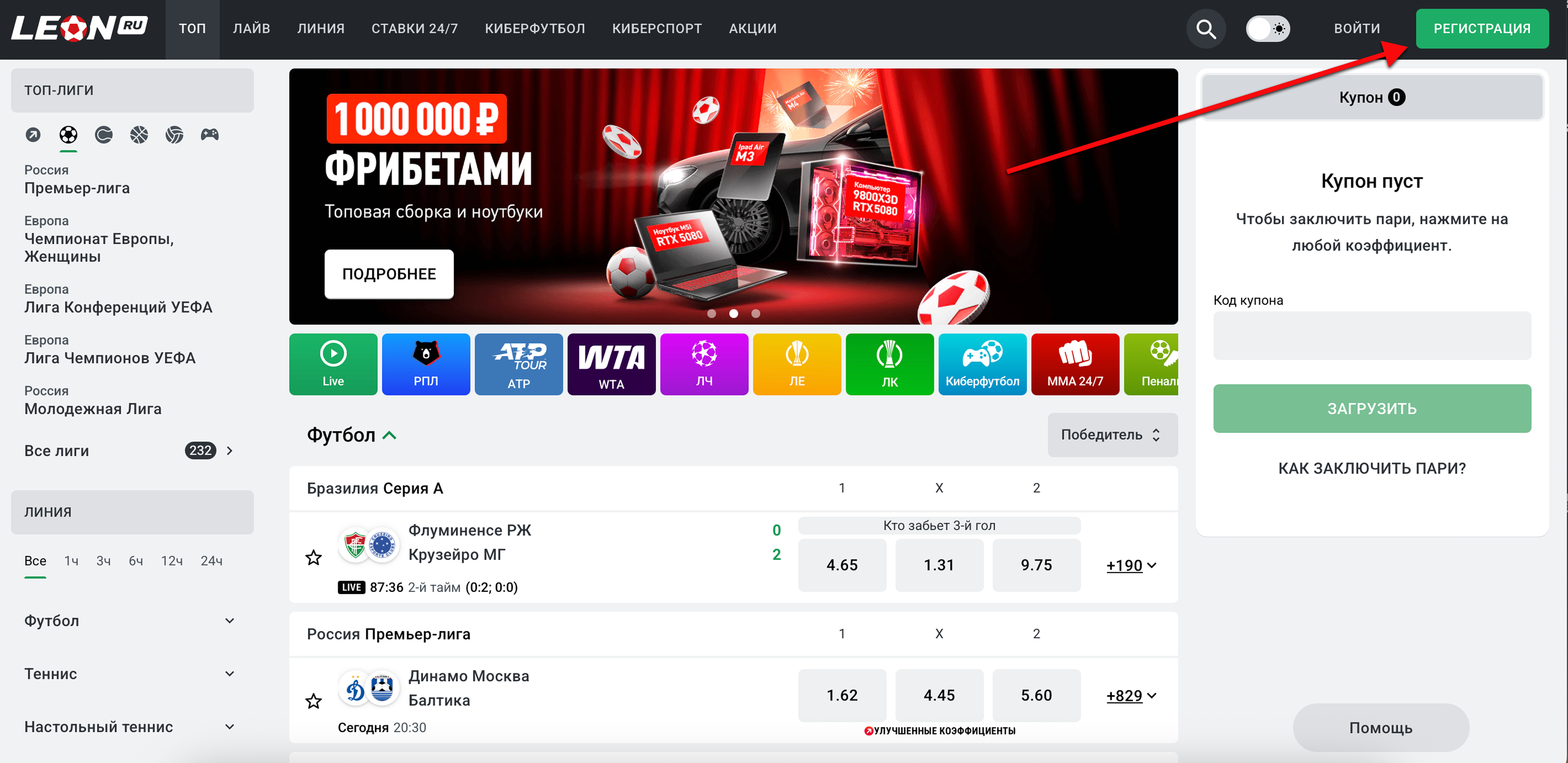 Подготовка к регистрации: В первую очередь необходимо посетить официальный сайт букмекерской компании «Леон» с помощью компьютера или мобильного устройства.