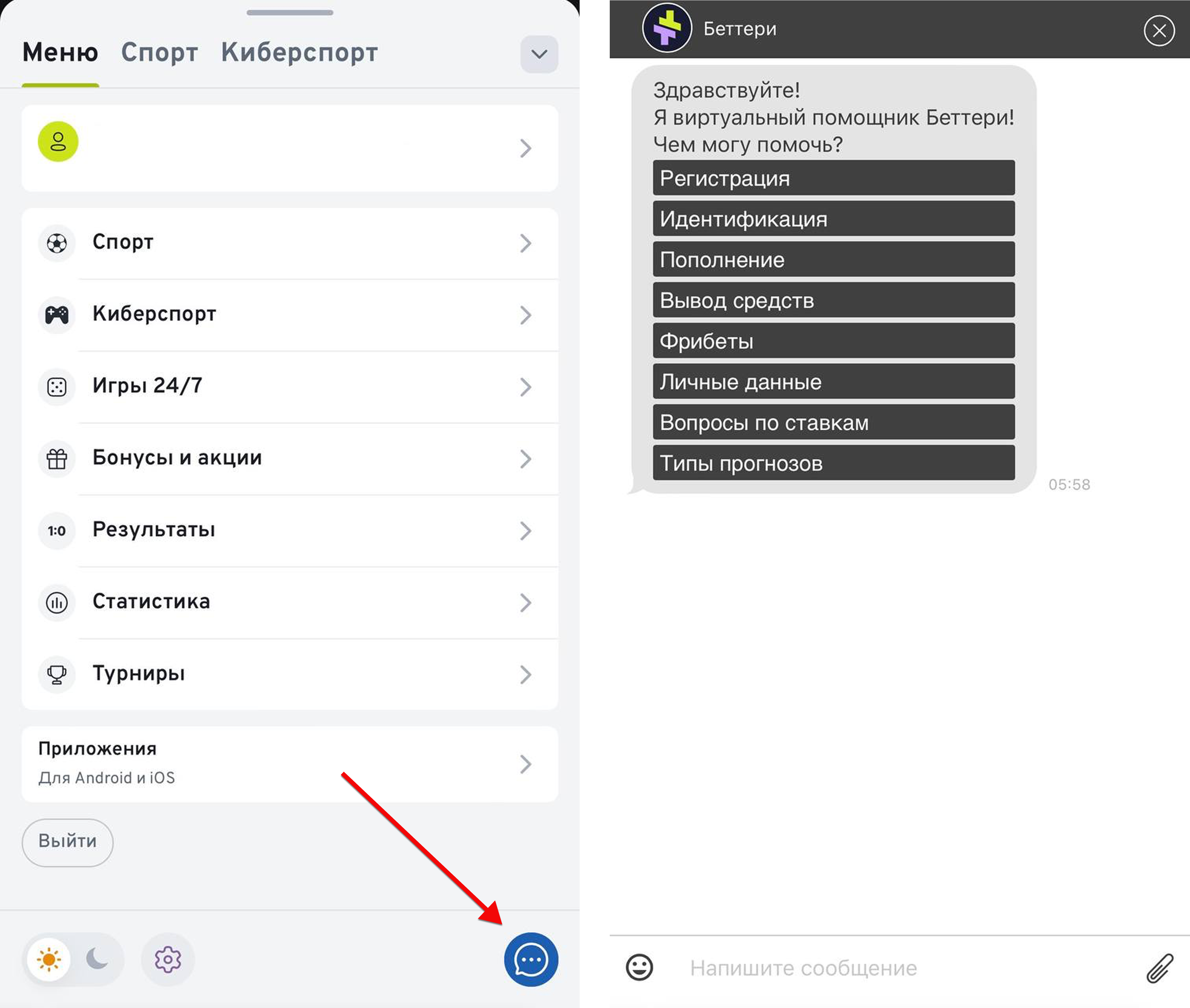 Одним из самых быстрых и простых способов связи является онлайн-чат, доступный на сайте Bettery. Иконка чата расположена в правом нижнем углу и видна на всех страницах сайта. Чтобы начать общение, просто нажмите на этот значок — откроется окно чата.