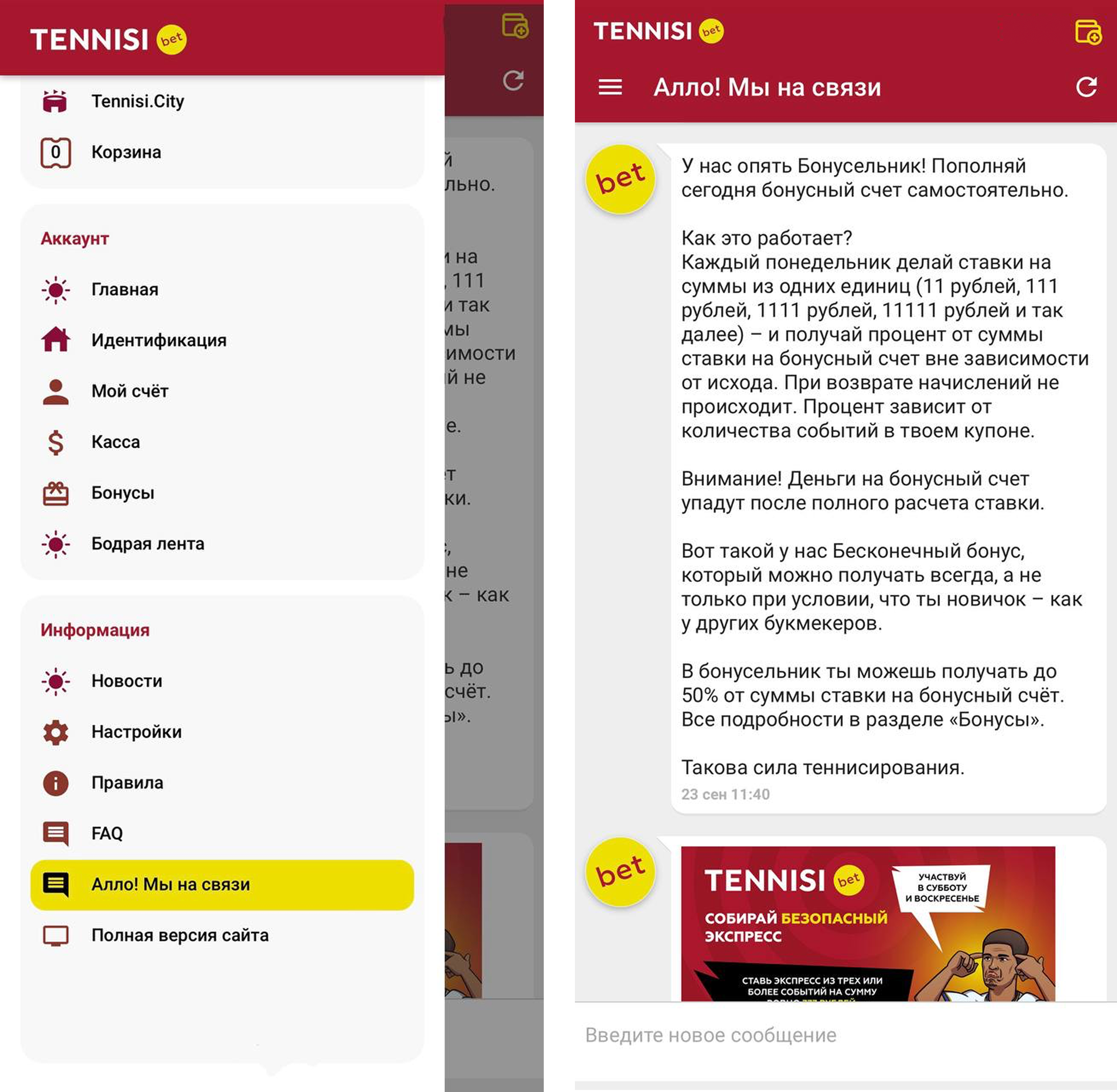 Отправьте заявление на электронную почту службы поддержки БК Tennisi.