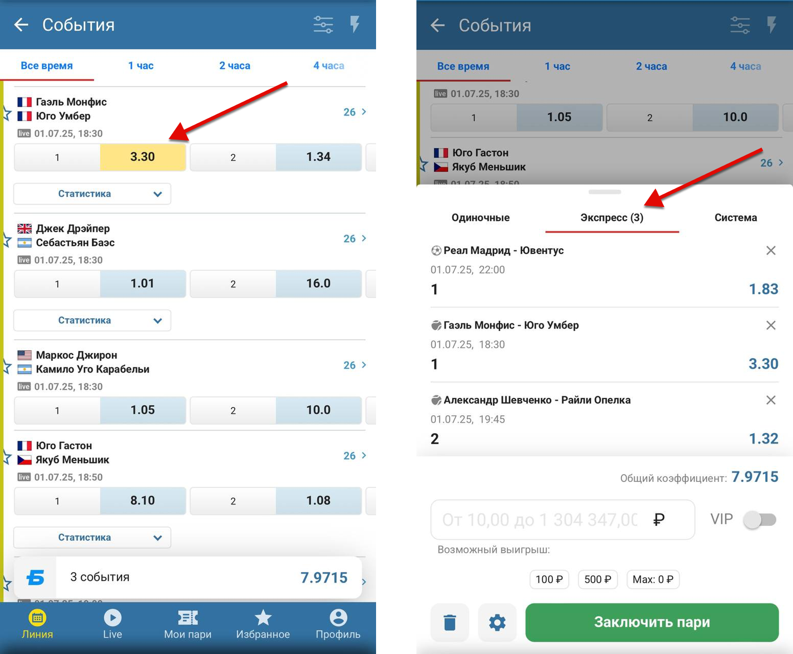 Экспресс ставка – это вид пари, в котором объединяются несколько независимых исходов различных событий. Выигрыш по такой ставке зависит от одновременного выполнения всех включенных в нее условий. Преимущество экспресс ставок заключается в том, что итоговый коэффициент рассчитывается путем умножения коэффициентов всех выбранных событий, что позволяет получить высокий потенциальный выигрыш.