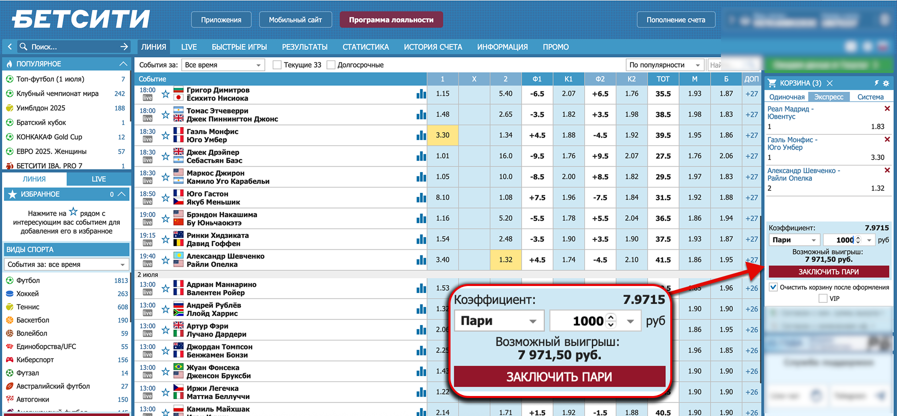 Вопрос 1: Как сделать экспресс-ставку в букмекерской компании Бетсити?