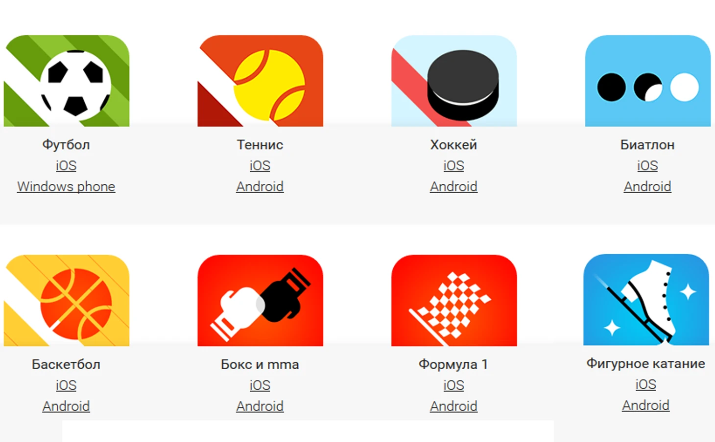 Отдельные мобильные приложения Sports.ru по популярным видам спорта