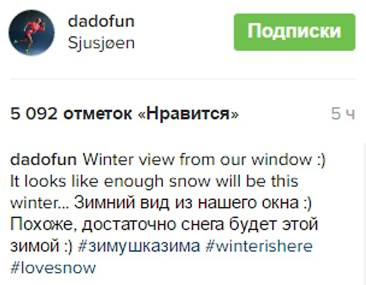 «Зимний вид из нашего окна. Похоже, достаточно снега будет этой зимой», – написала Домрачева.