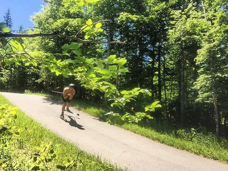 Французский биатлонист Симон Фуркад сообщил, что сегодня проводит тренировку на лыжероллерах.