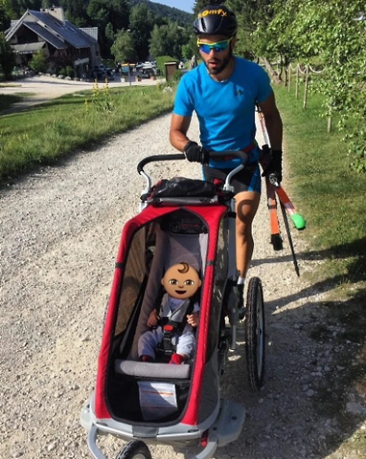 Французский биатлонист Симон Фуркад сообщил, что на тренировке побывал его сын.