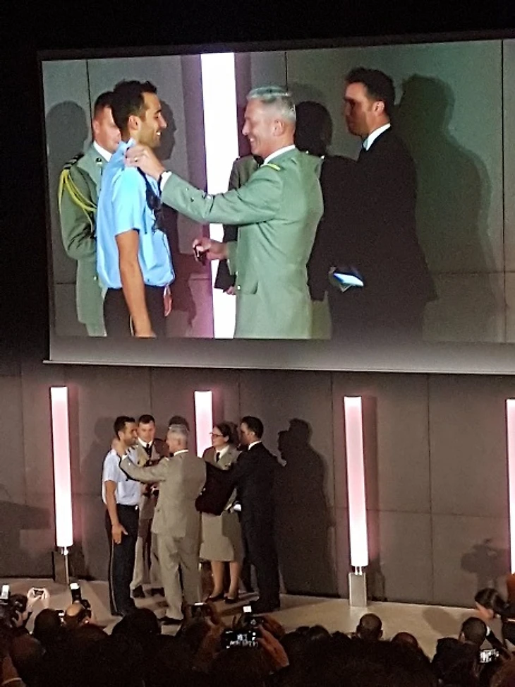 Погоны двукратному олимпийскому чемпиону вручал начальник Главного штаба Вооруженных сил Франции Франсуа Лекуантр.