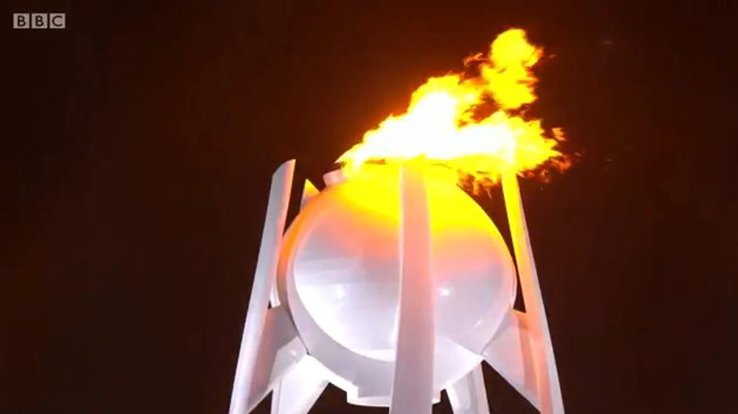 Олимпийскую чашу после эстафеты огня зажгла олимпийская чемпионка Ванкувера-2010 в одиночном катании Ю-На Ким.