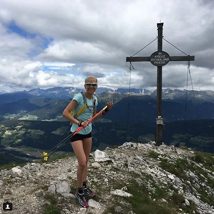 «Я широко улыбаюсь, потому что наконец-то вернулась в горы! #восхождение по горам в Доломитах #тренировочный лагерь #наслаждение от тяжелой работы», – написала Мякяряйнен.
