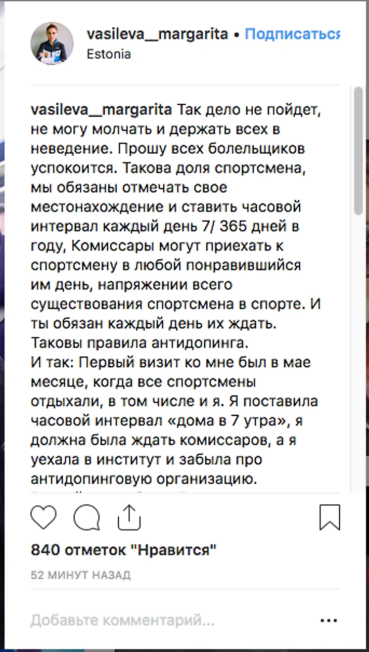 💉 «Я должна была ждать комиссаров, но уехала в институт и забыла про них». Маргарита Васильева рассказала, почему пропускала допинг-тесты