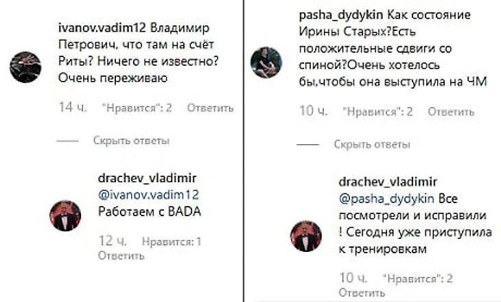 «Работаем с WADA», – ответил Драчев на вопрос пользователя о Васильевой, которой грозит дисквалификация за пропуск трех допинг-тестов в течения года.
