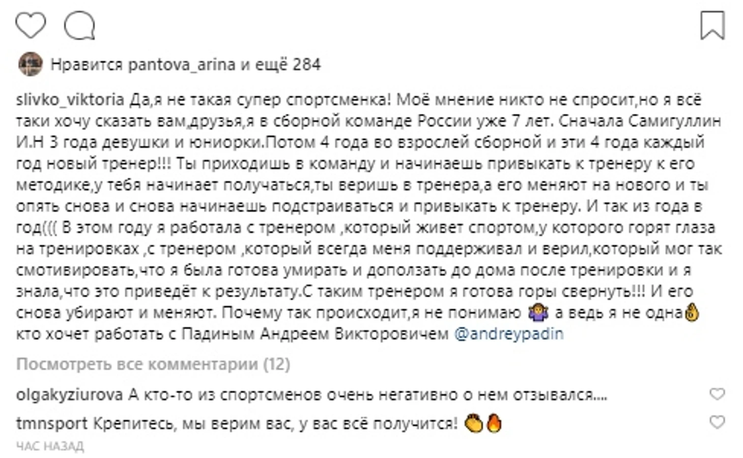 Почему так происходит, я не понимаю. А ведь я не одна, кто хочет работать с Падиным Андреем Викторовичем», – написала Сливко в инстаграме.