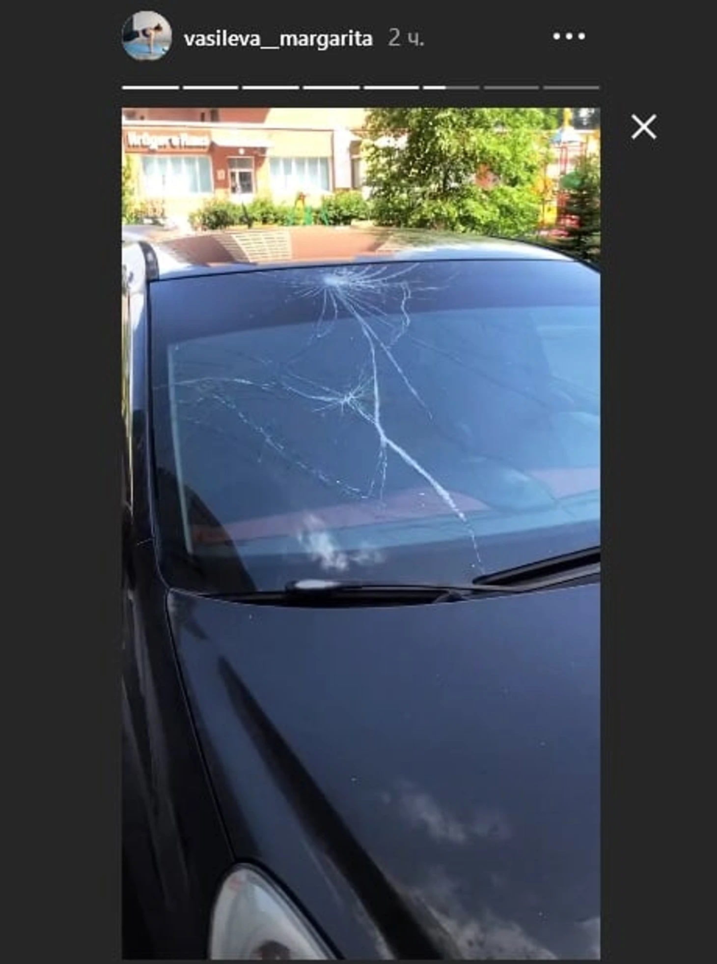 «Что-то упало», – прокомментировала спортсменка видео машины с разбитым лобовым стеклом.