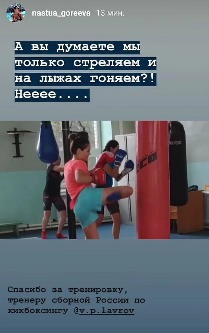 Спасибо за тренировку тренеру сборной России по кикбоксингу Владимиру Лаврову», – написала Гореева.