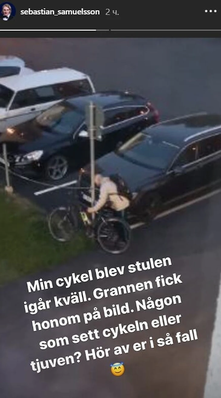 «Мой велосипед был украден прошлой ночью. Это попало в кадр. Кто-нибудь видел велосипед или вора? В этом случае свяжитесь со мной», – написал Самуэльссон.