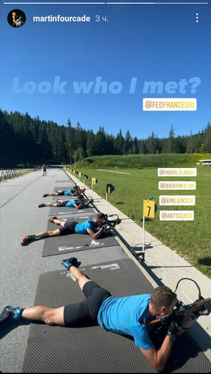 Французская команда сейчас проводит сбор в Коррансон-ан-Веркоре. Экс-биатлонист поделился фотографией, на которой Фабьен Клод, Кентен Фийон-Майе, Эмильен Жаклен и Антонин Гигонна стреляют из положения лежа.