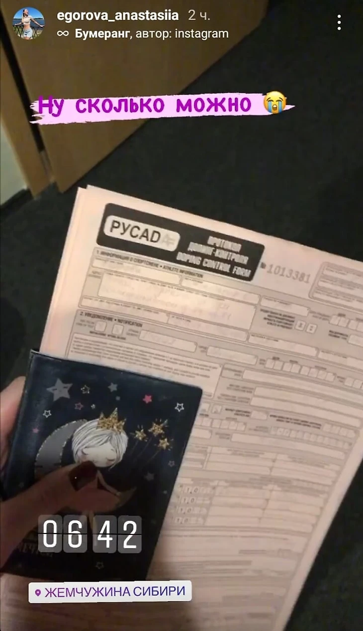 «Ну сколько можно», – подисала Егорова сторис с протоколом допинг-контроля.