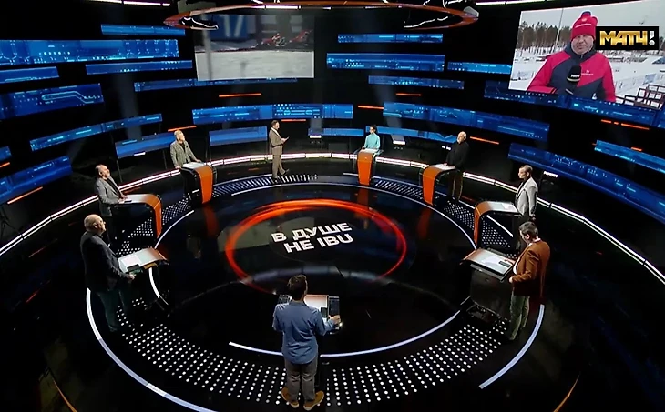 На «Матч ТВ» в программе «Есть тема!» обсуждают отстранение российского биатлона, название выпуска – «В душе не IBU»
