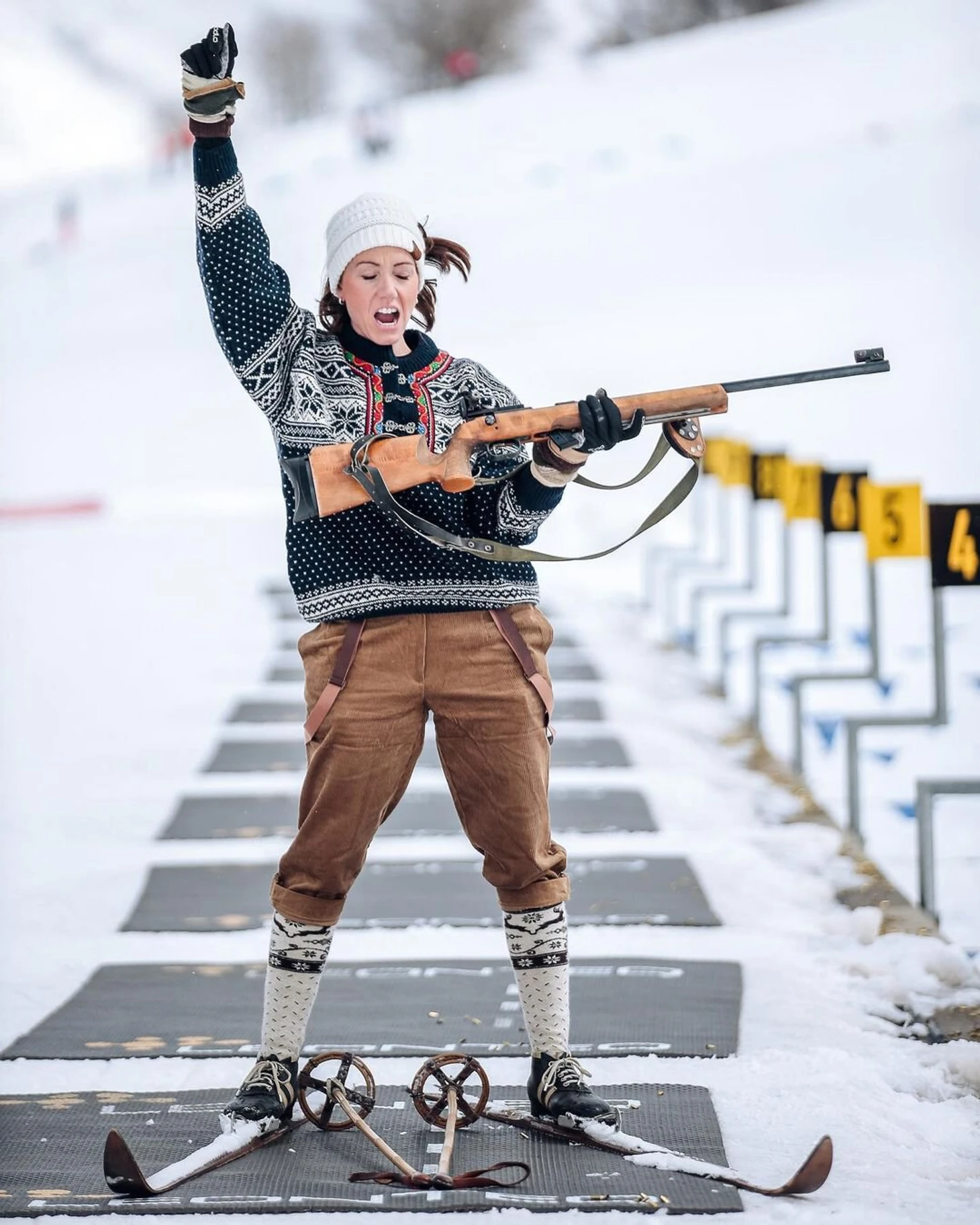 Швейцарская биатлонистка Селина Гаспарин, объявившая о завершении карьеры, пробежала последнюю гонку в ретроэкипировке.