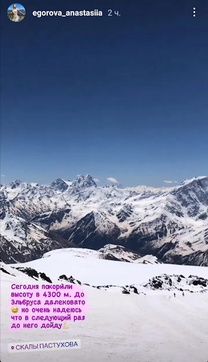 Анастасия Егорова: «Сегодня покорили высоту в 4300 м. До Эльбруса далековато, но очень надеюсь, что в следующий раз до него дойду»
