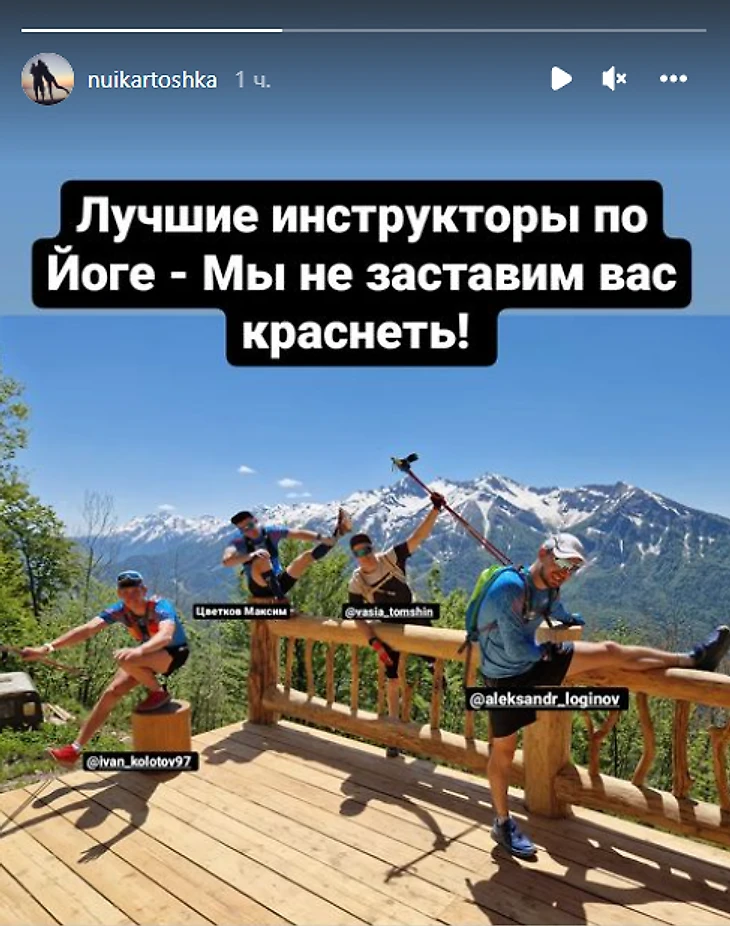 В сторис спортсмен показал разминку с участием Александра Логинова, Максима Цветкова, Василия Томшина и Ивана Колотова.