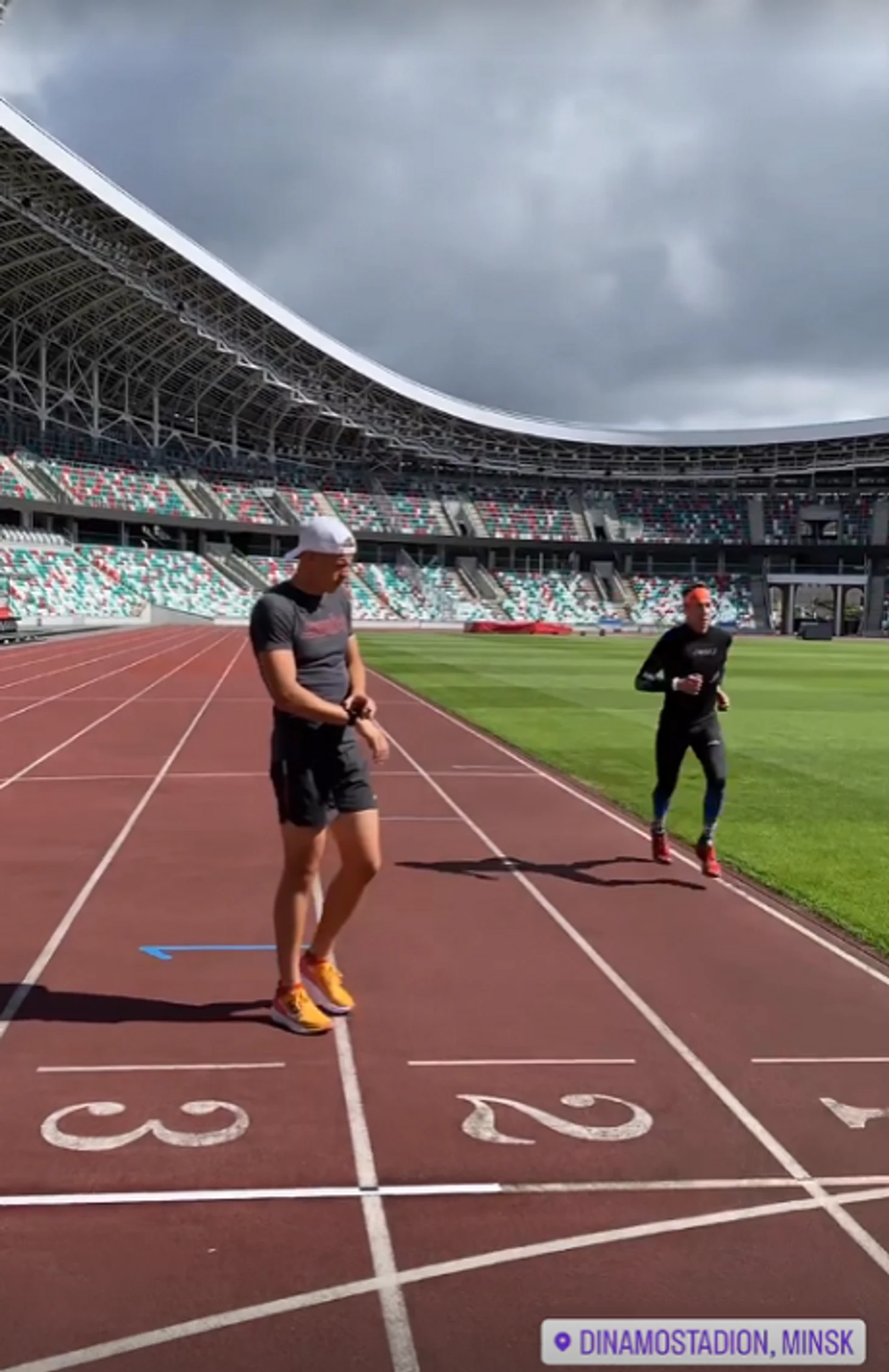 Биатлонисты сборной России, тренирующиеся в группе Сергея Башкирова, провели тренировку на стадионе «Динамо» в Минске.