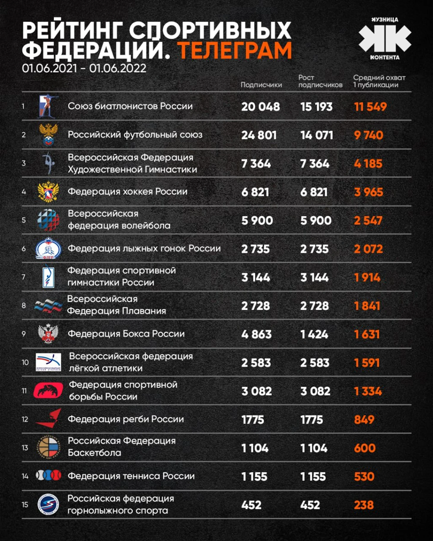 6. Если у федерации 2 канала (например, федерации и сборной), считаем тот, где результаты лучше», – написал Кузнецов в своем телеграм-канале «Кузница контента».