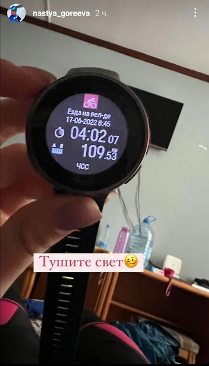 «Тушите свет». Гореева проехала 109 км на велосипеде
